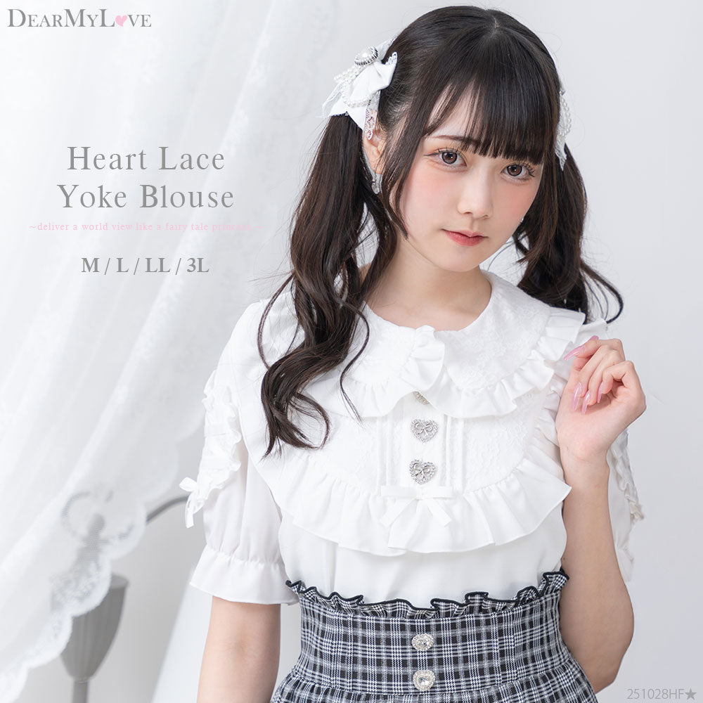袖ハートレースアップデザインかわいいヨークブラウス?