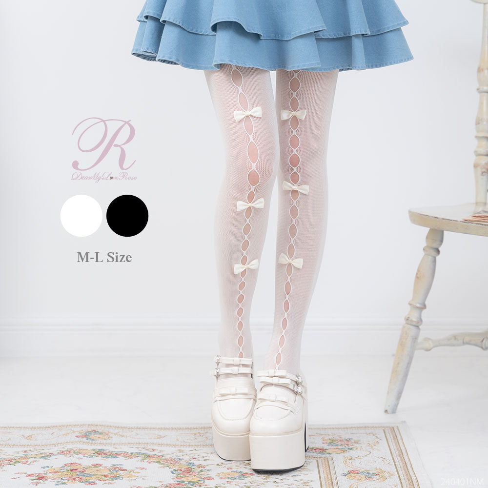 フロントホールとリボンの技あり編みタイツのご紹介。
