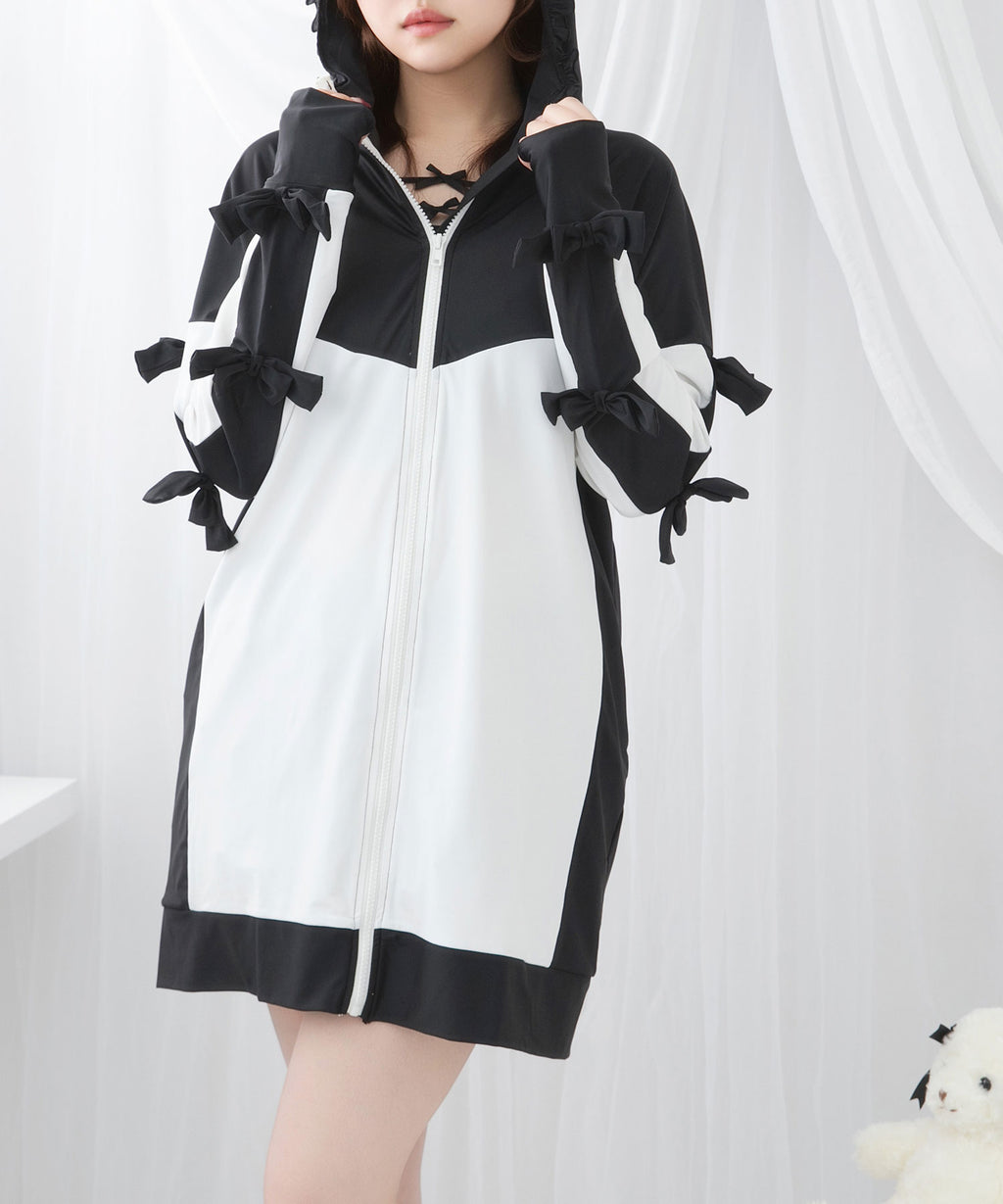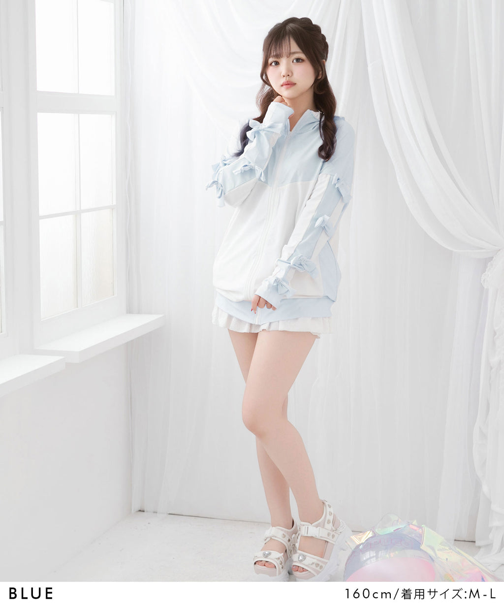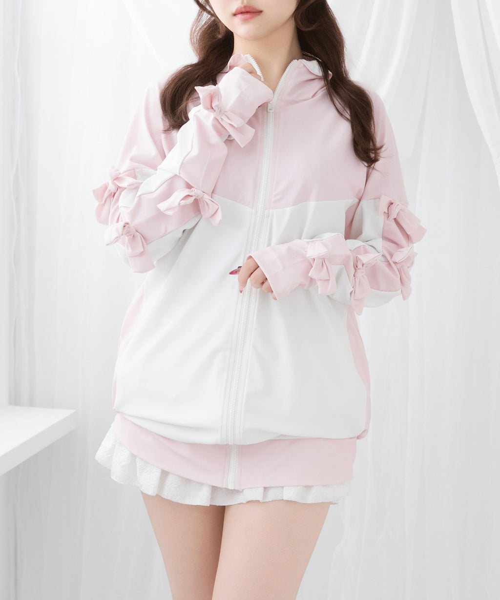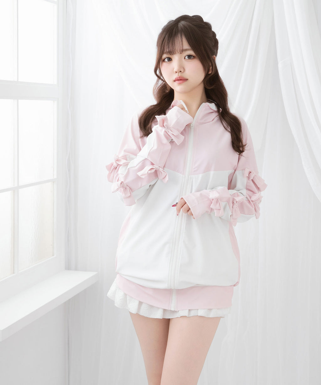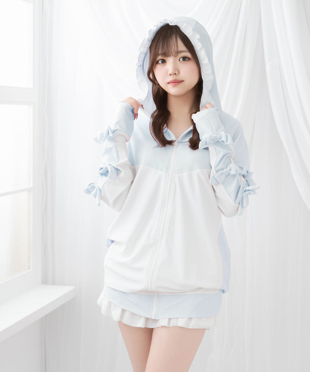 ジャージライクな配色切り替えや袖のリボン、フード口のフリルなどサブカル地雷や天使界隈系にぴったりのデザインがたっぷりです♪