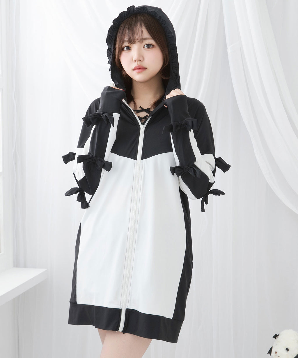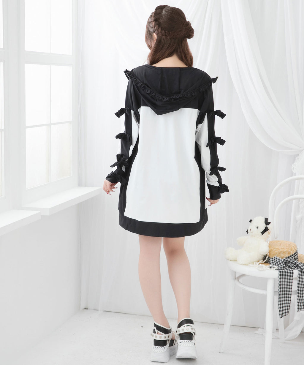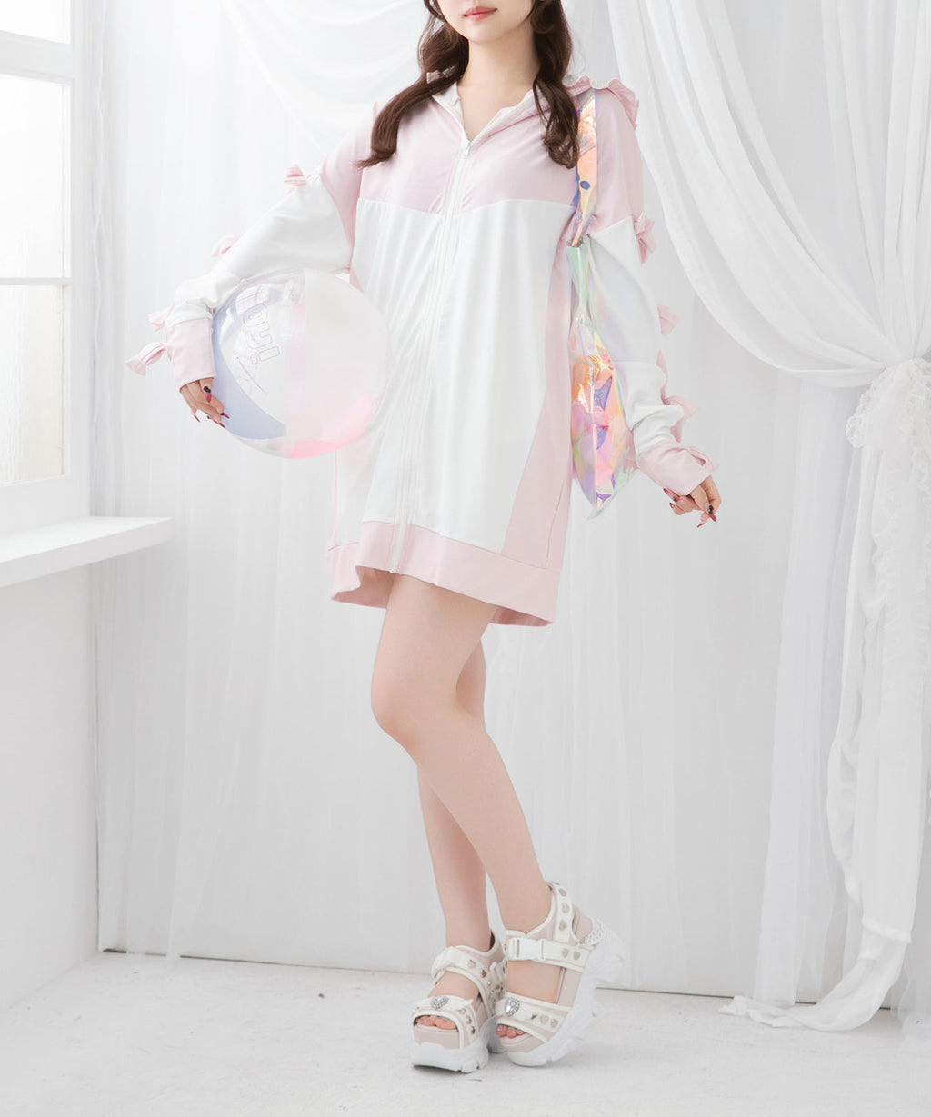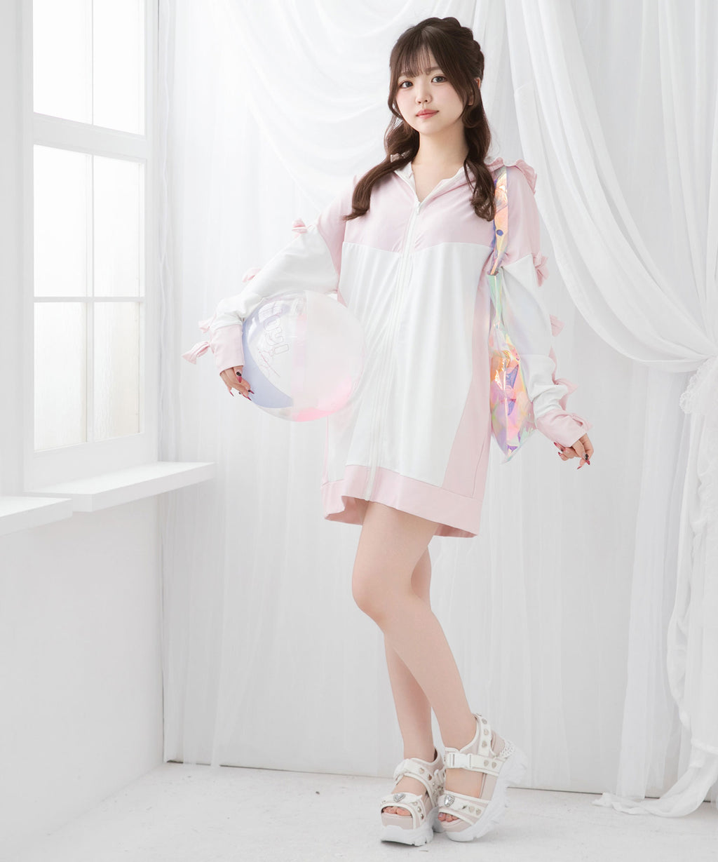 ジャージライクな配色切り替えや袖のリボン、フード口のフリルなどサブカル地雷や天使界隈系にぴったりのデザインがたっぷりです♪