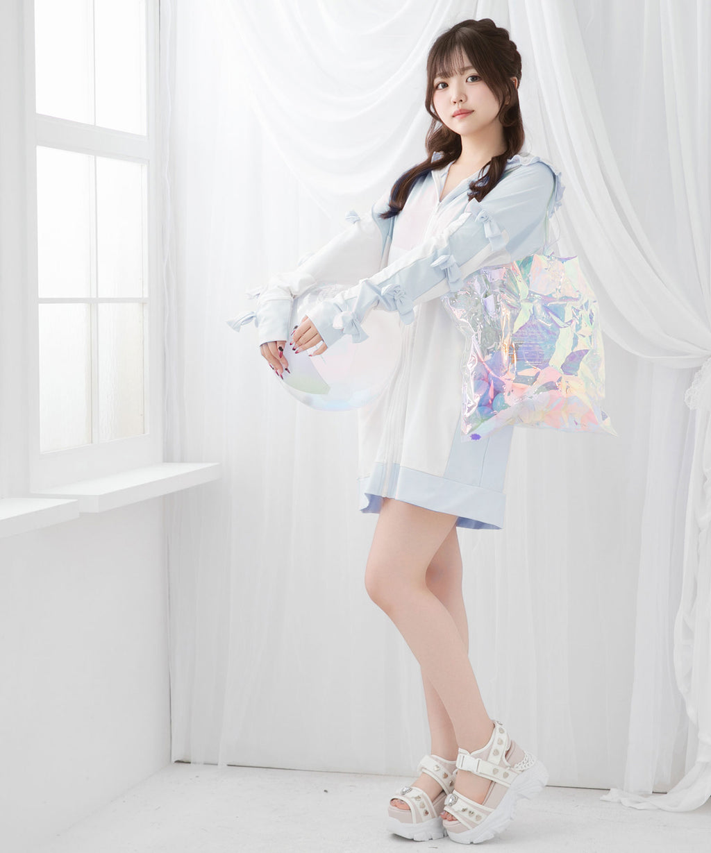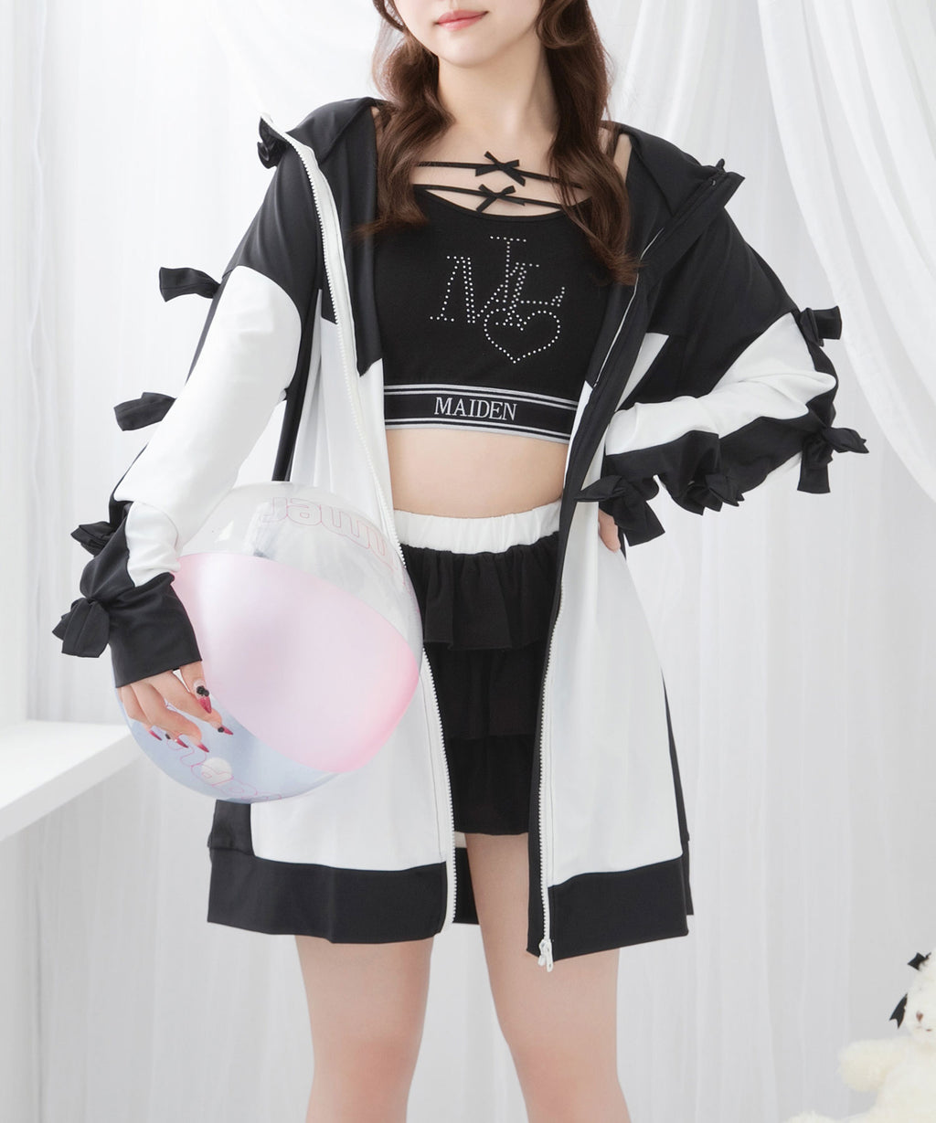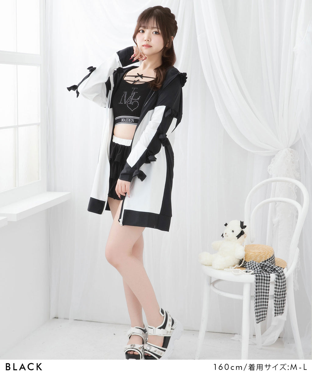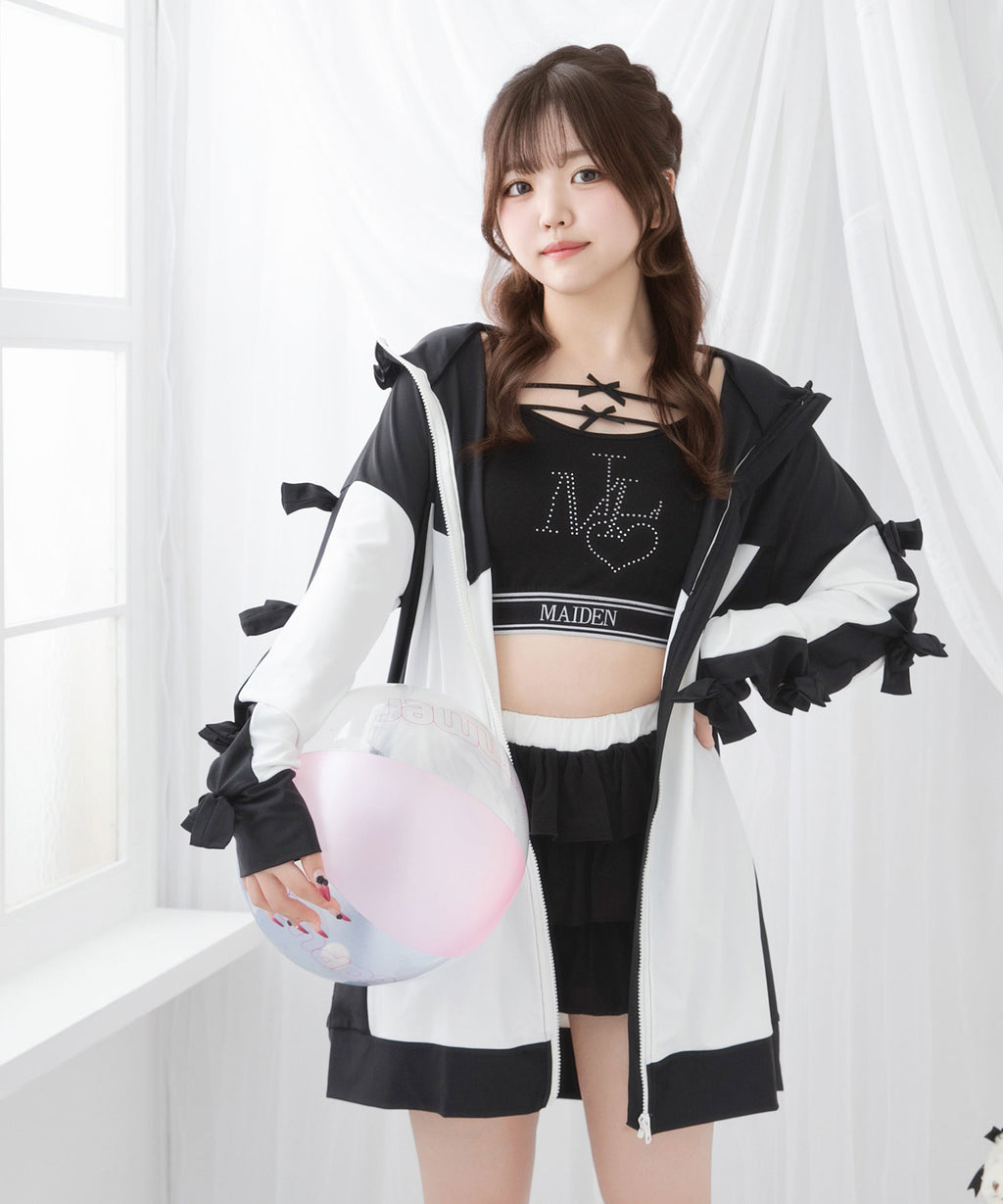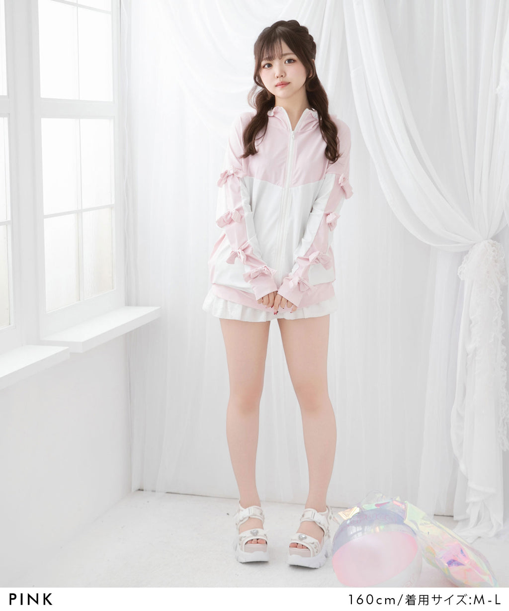 ジャージライクな配色切り替えや袖のリボン、フード口のフリルなどサブカル地雷や天使界隈系にぴったりのデザインがたっぷりです♪