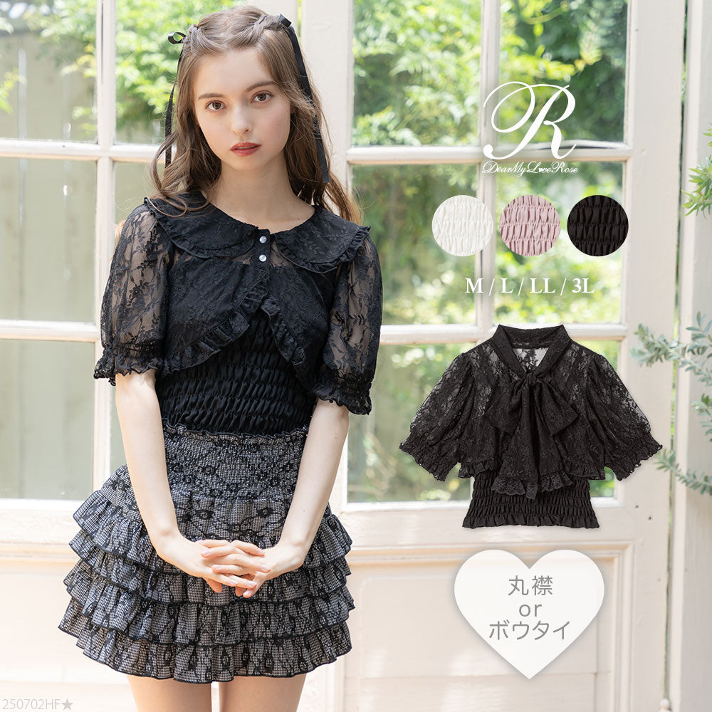 ボレロは旬なショート丈デザインで、繊細なレース生地とフリルが上品で可愛らしい印象をプラスしてくれます。