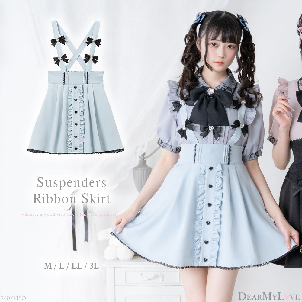 ビジューリボンたっぷりのかわいいサス付きスカート