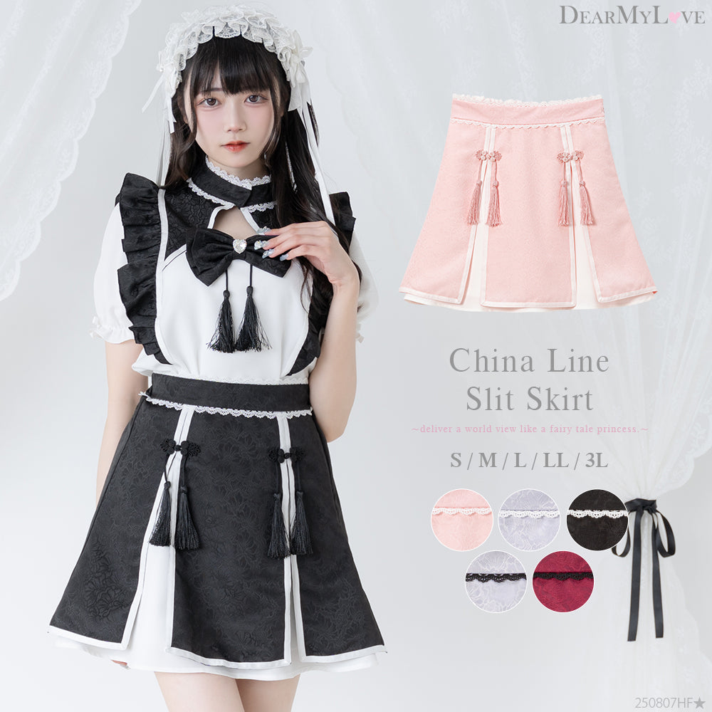 チャイナなテイストがかわいい!チャイナ釦とスリットがポイントのスカート♪