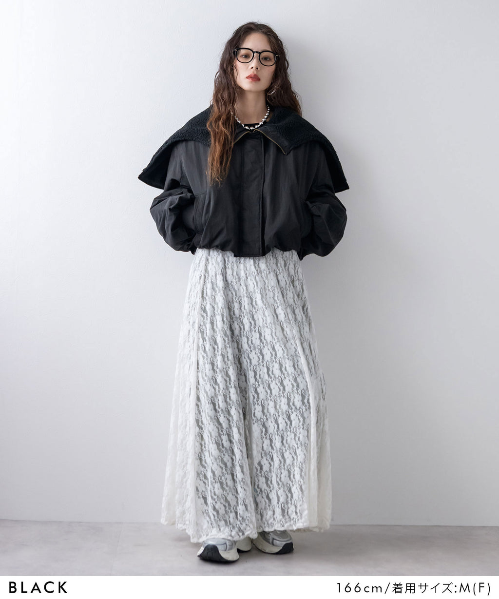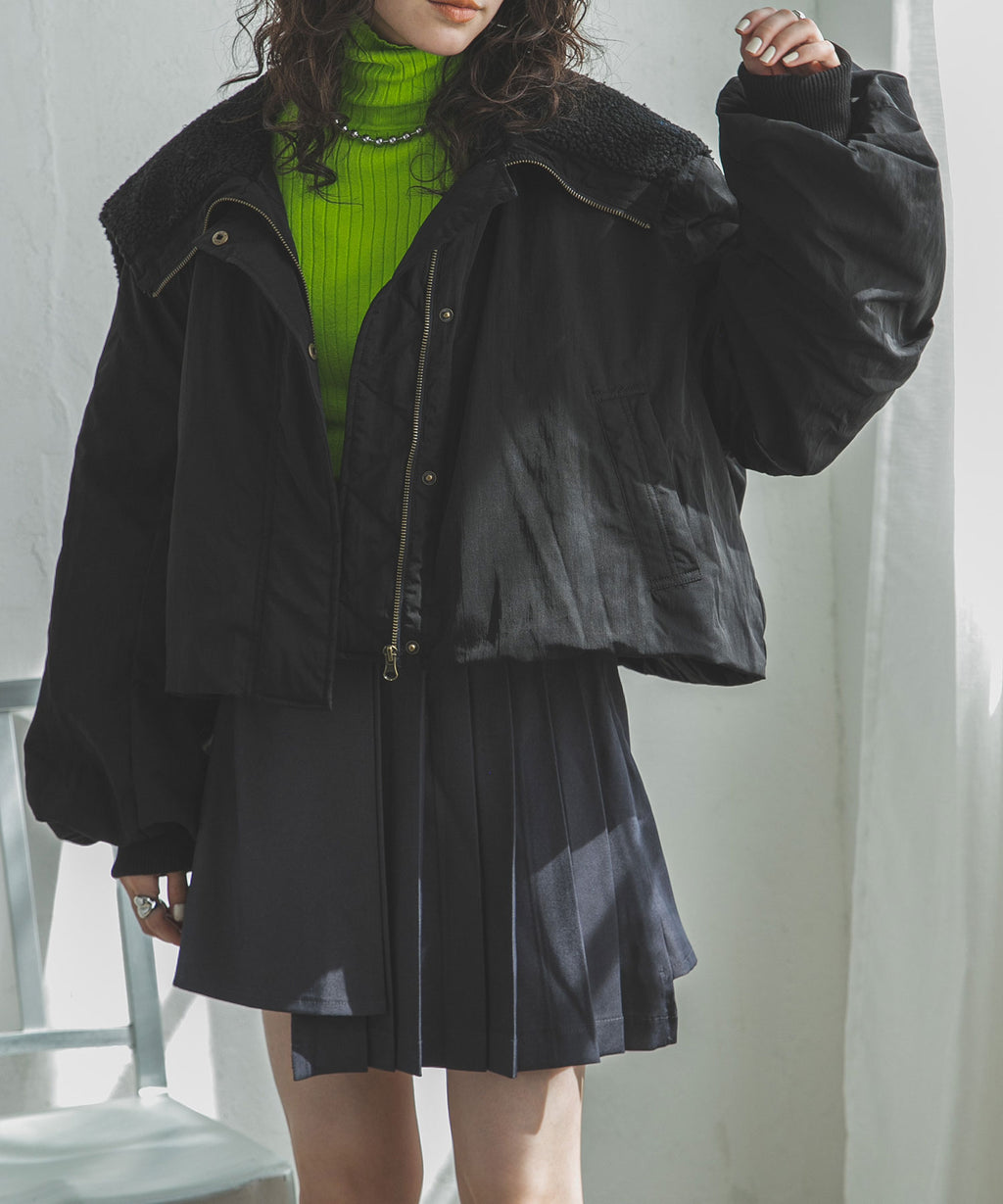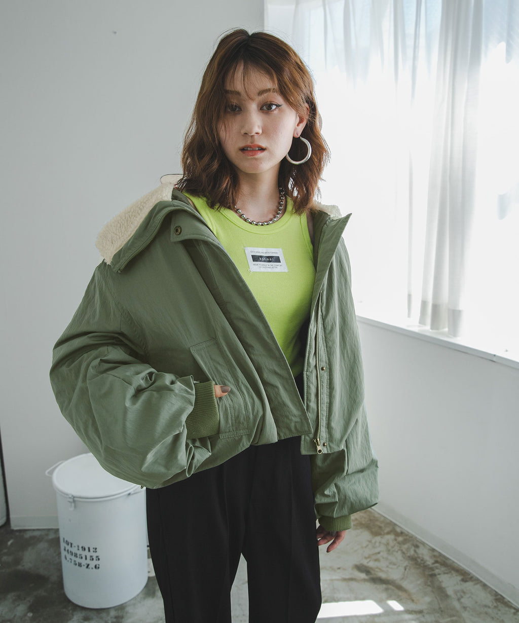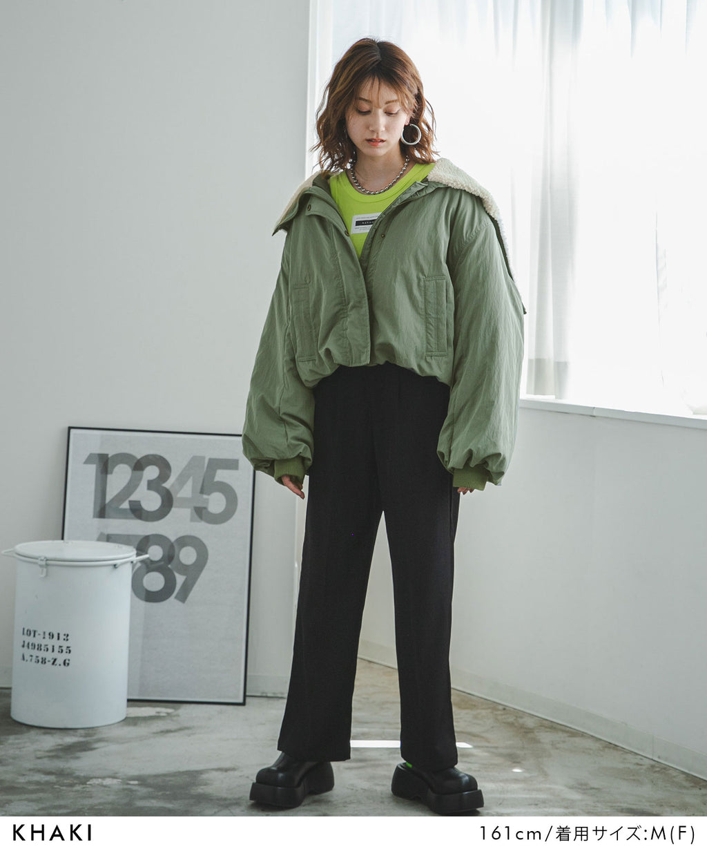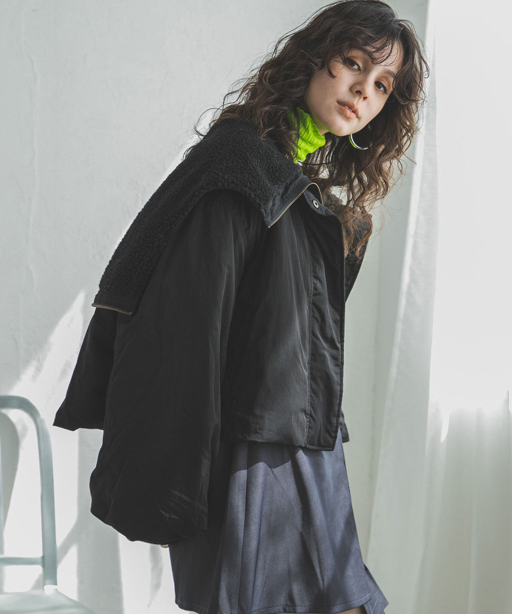 《素材》[表地]ポリエステル : 70% / ナイロン : 30% / [中綿]ポリエステル : 100% / [裏地]ポリエステル : 100% / [別布ボア(基布部分)]ポリエステル : 100% / [別布ボア(パイル部分)]ポリエステル : 100% / [別布リブ]ポリエステル : 97% / ポリウレタン : 3% /