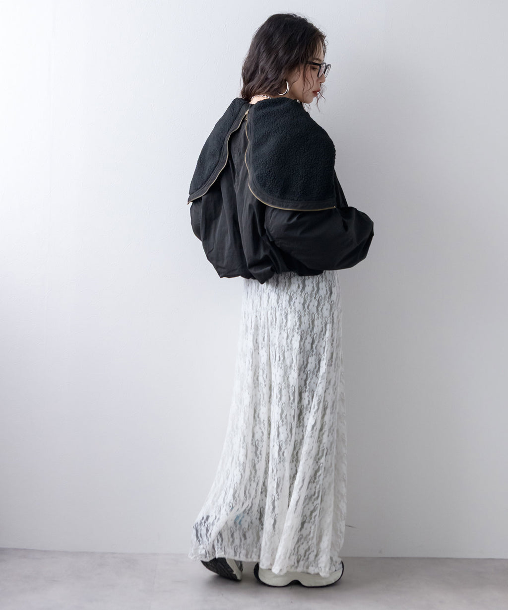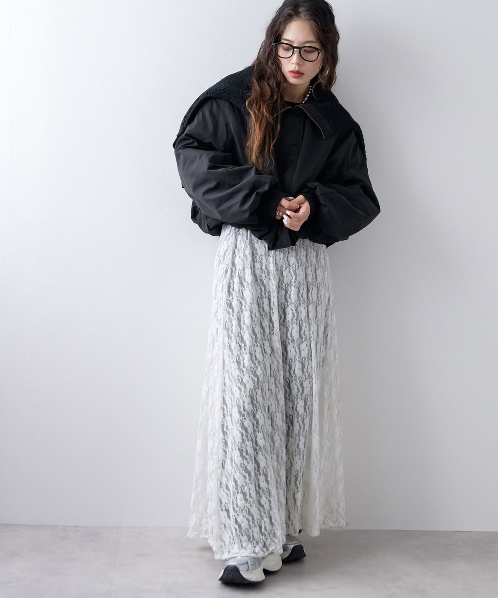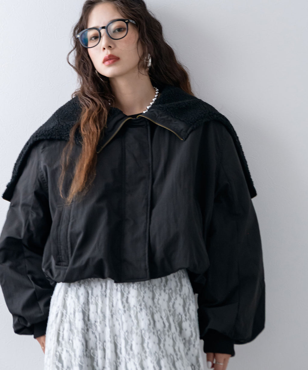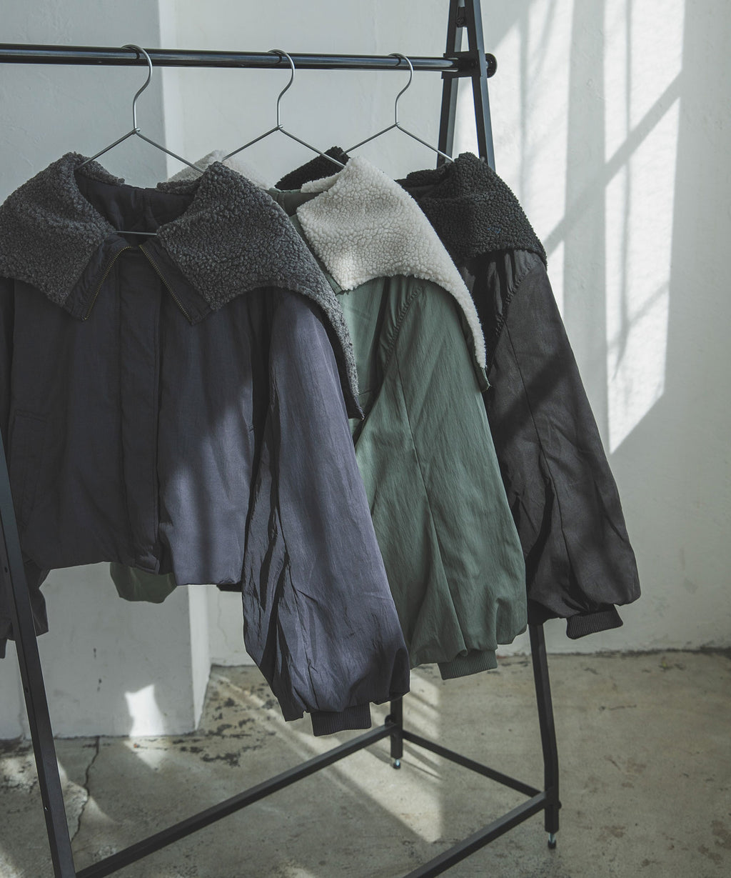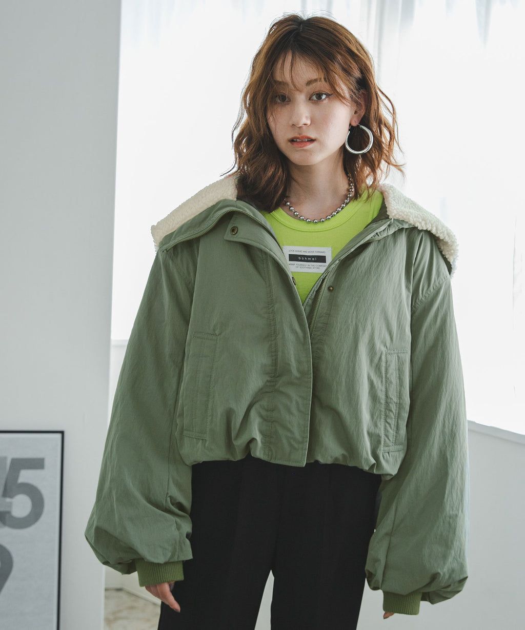 ミリタリーアイテムをベースに丸みのあるシルエットやボリュームスリーブを加えた