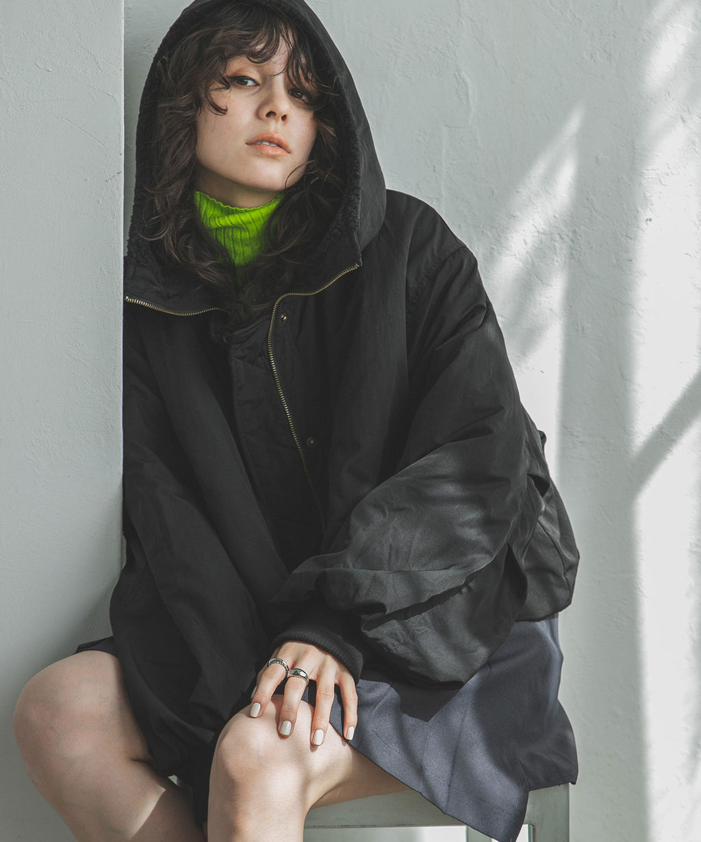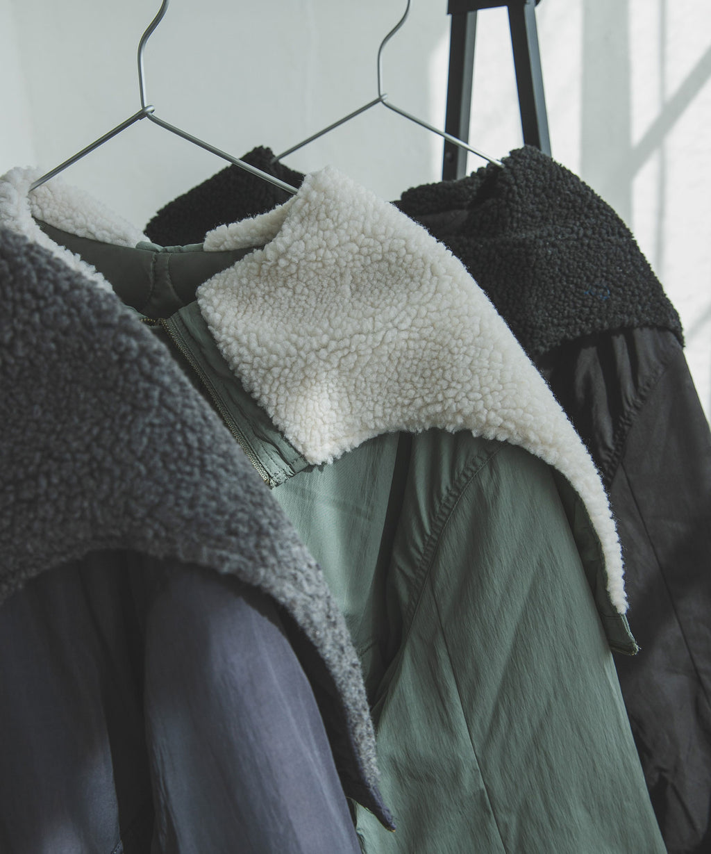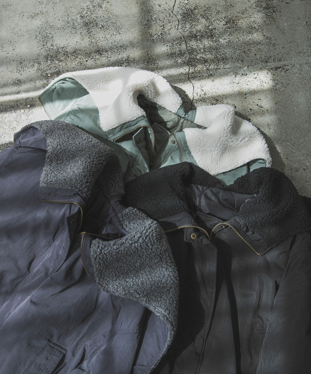 フード内部は異素材の温かみのあるボアを使用することで、アクセントに。