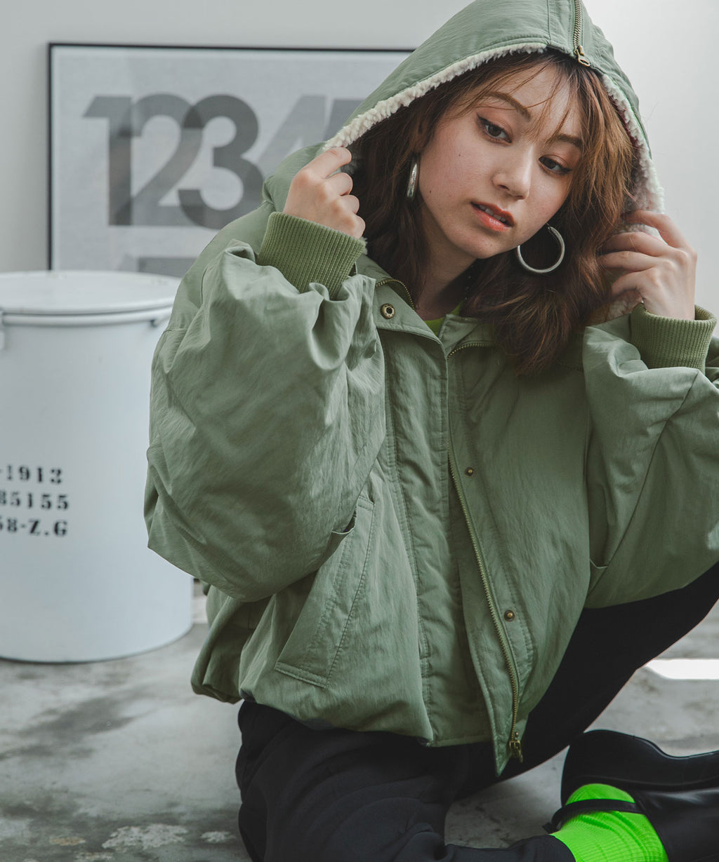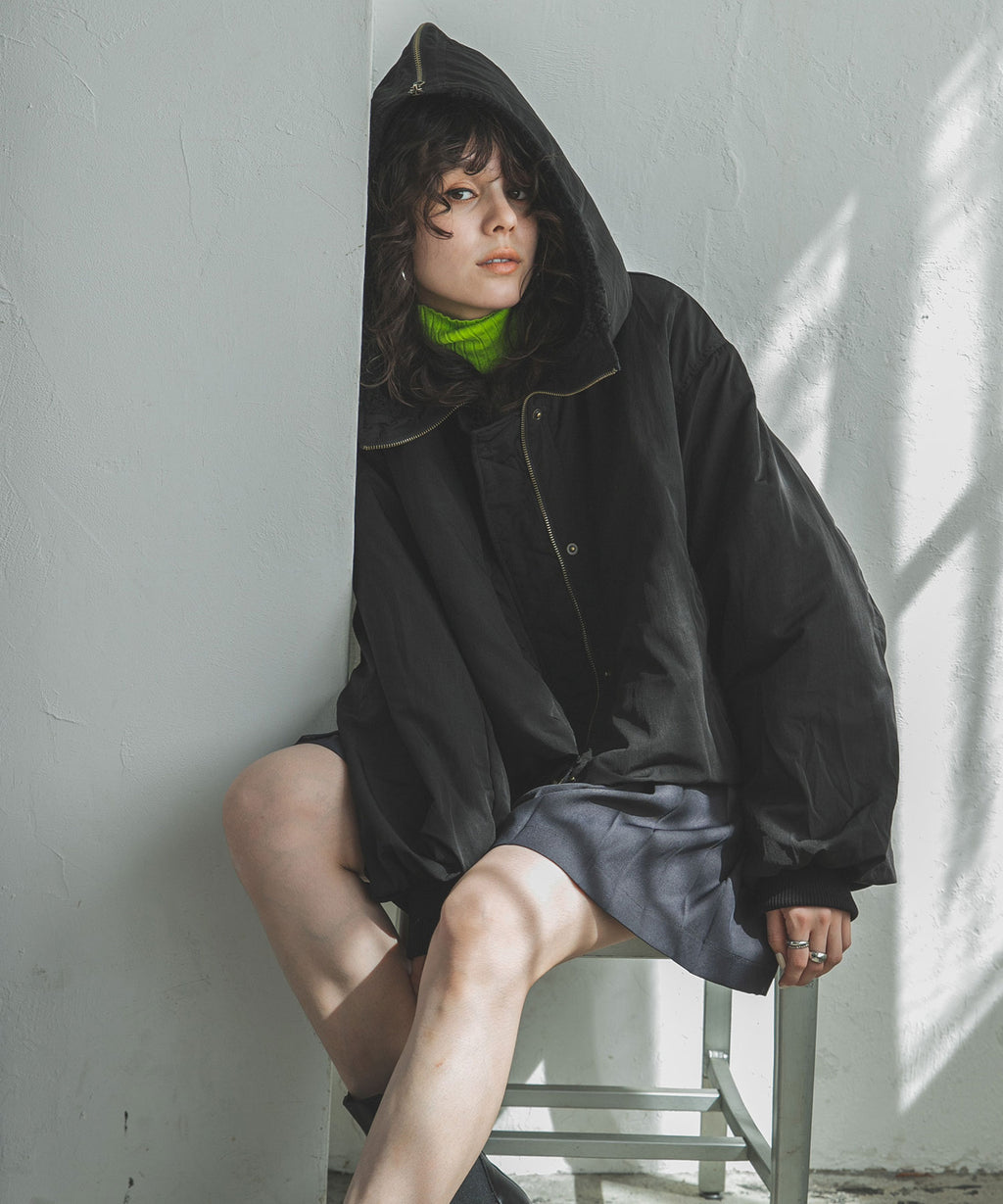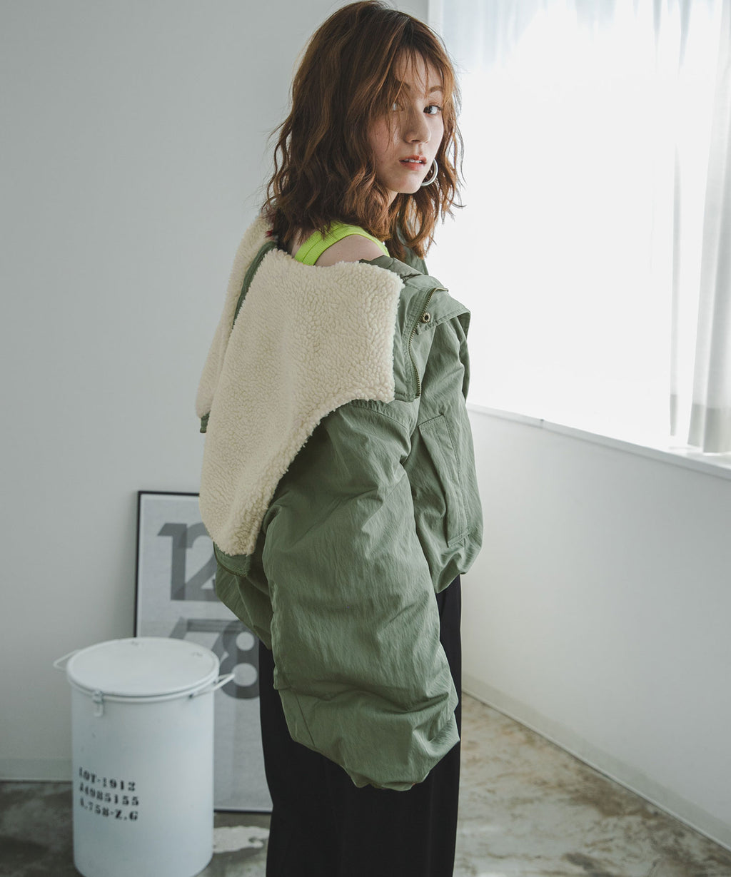 フード内部は異素材の温かみのあるボアを使用することで、アクセントに。