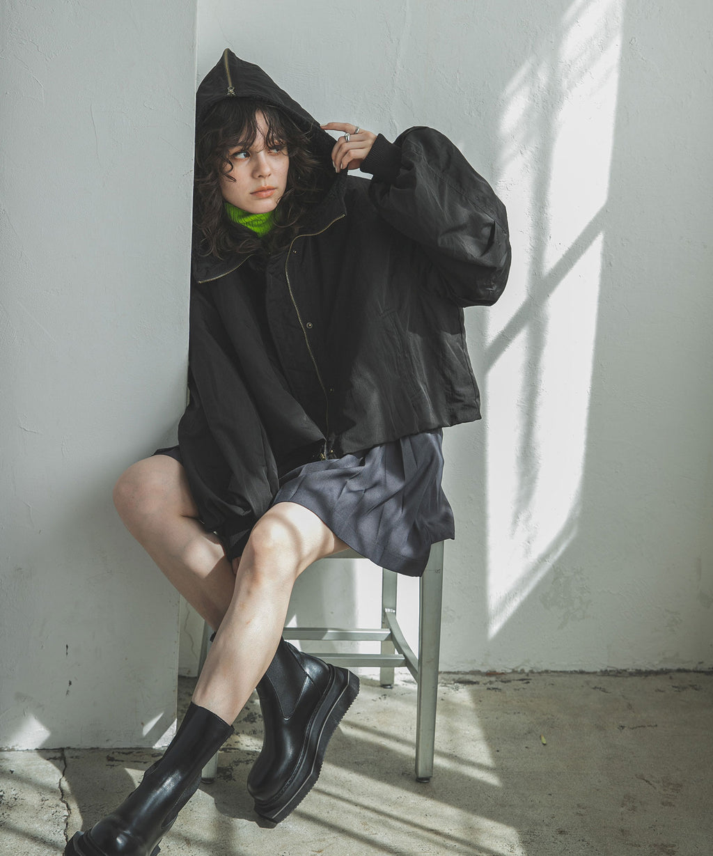 裾のドローコードを絞ることでバルーンシルエットにも変形可。