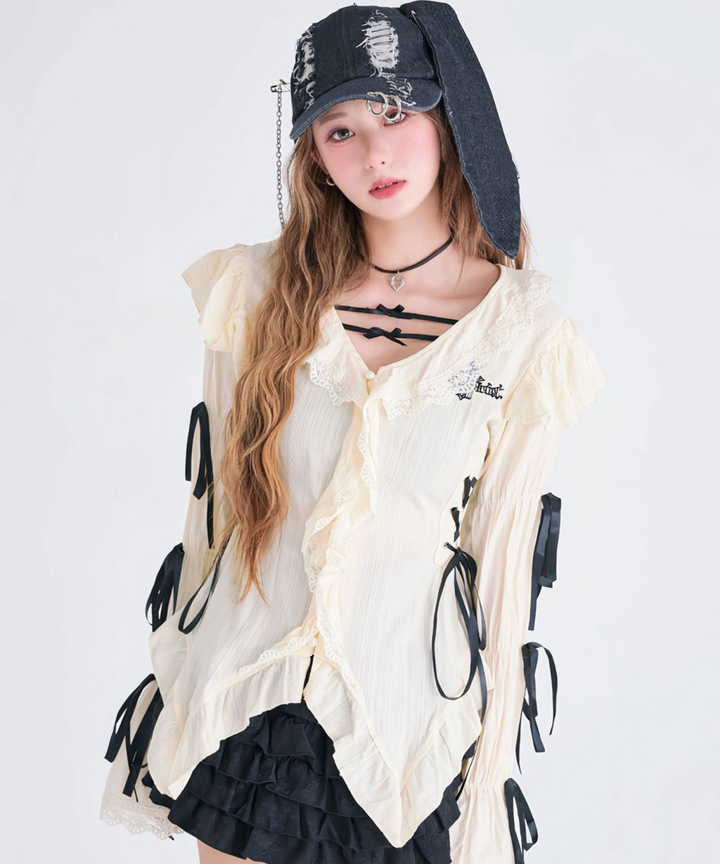 総レースが施された素材でフリフリティアードが可愛いデザイン。