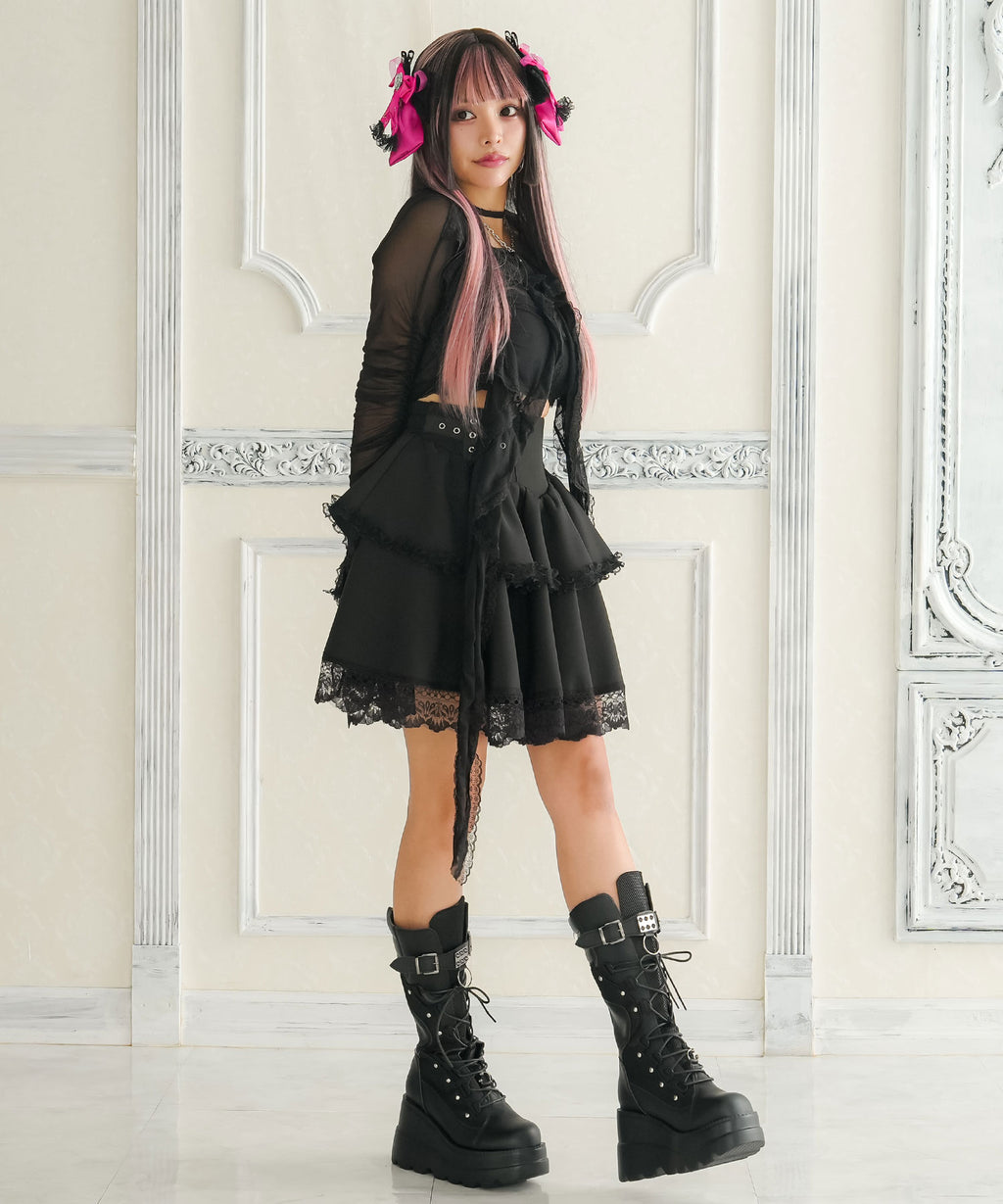 ゴシックやロリータファッションに影響を受けた、強烈なインパクトを持つデザインが特徴。