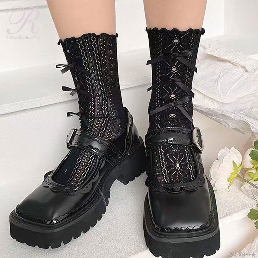 バレエコアライクなスタイリングにおすすめなシアーハイソックスです。