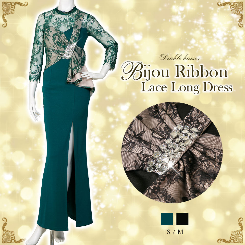 レースの透け感とバストを強調させたデザインがセクシーなロングドレス