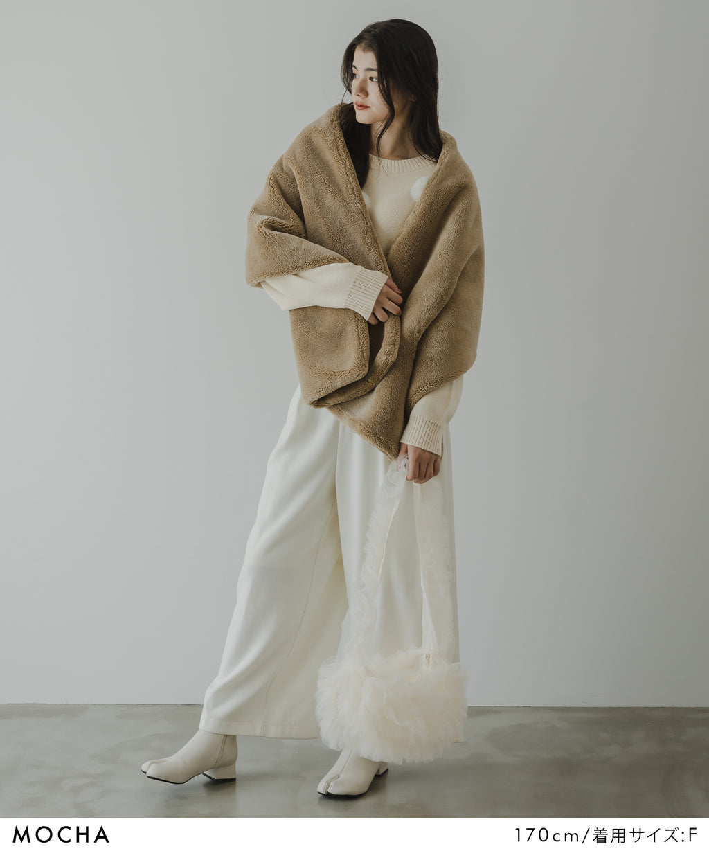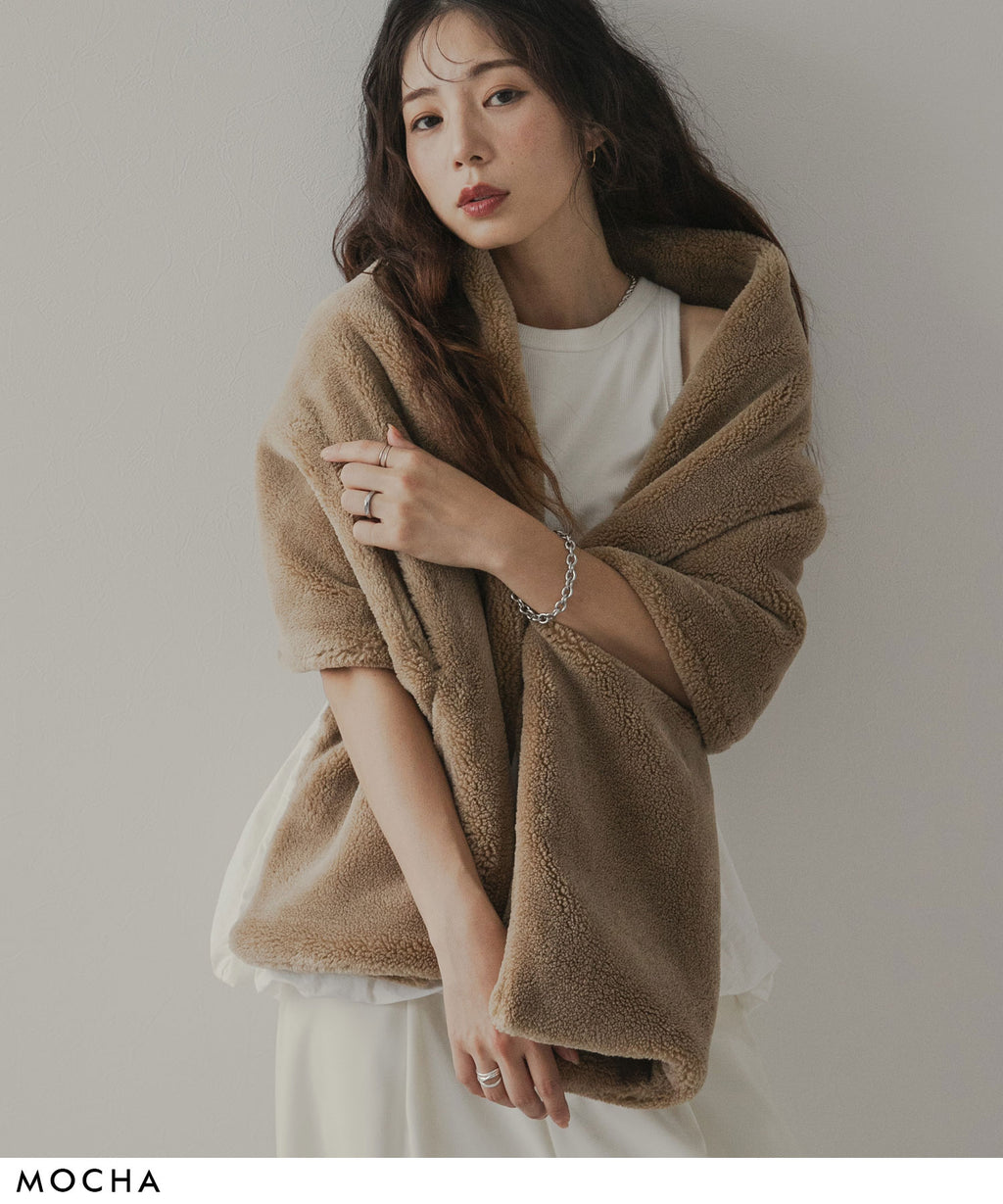 納得のボリューム感とストレスフリーな軽さ、肌当たり抜群の柔らかさを兼ね備えた最高の着心地にこだわったボアストールです。