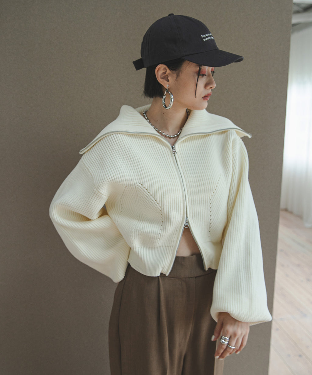 ダブルジップのショートカーディガンニット
