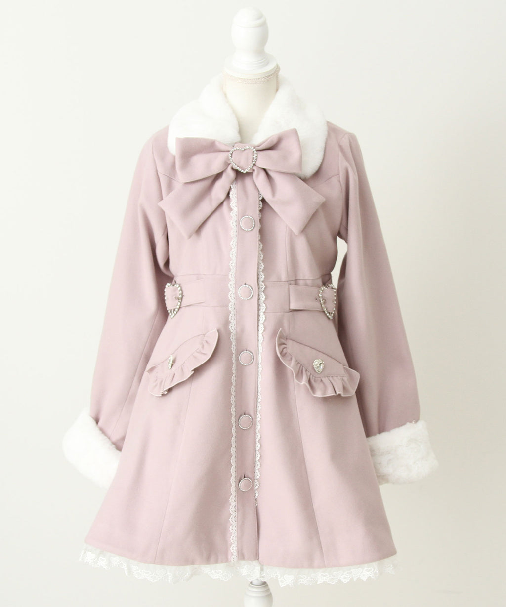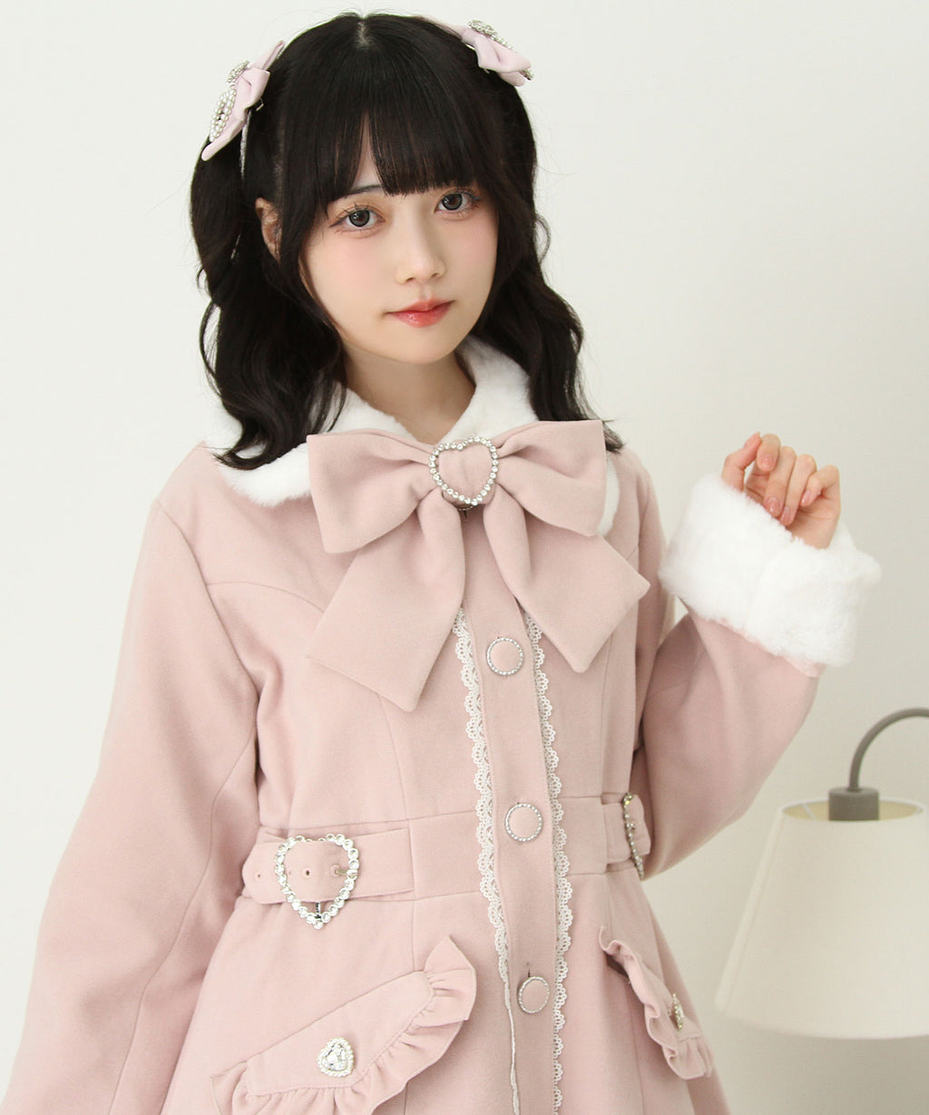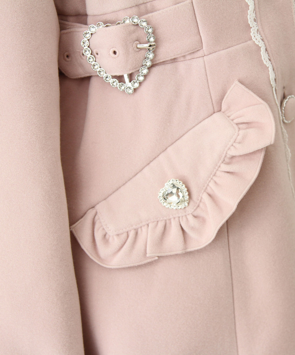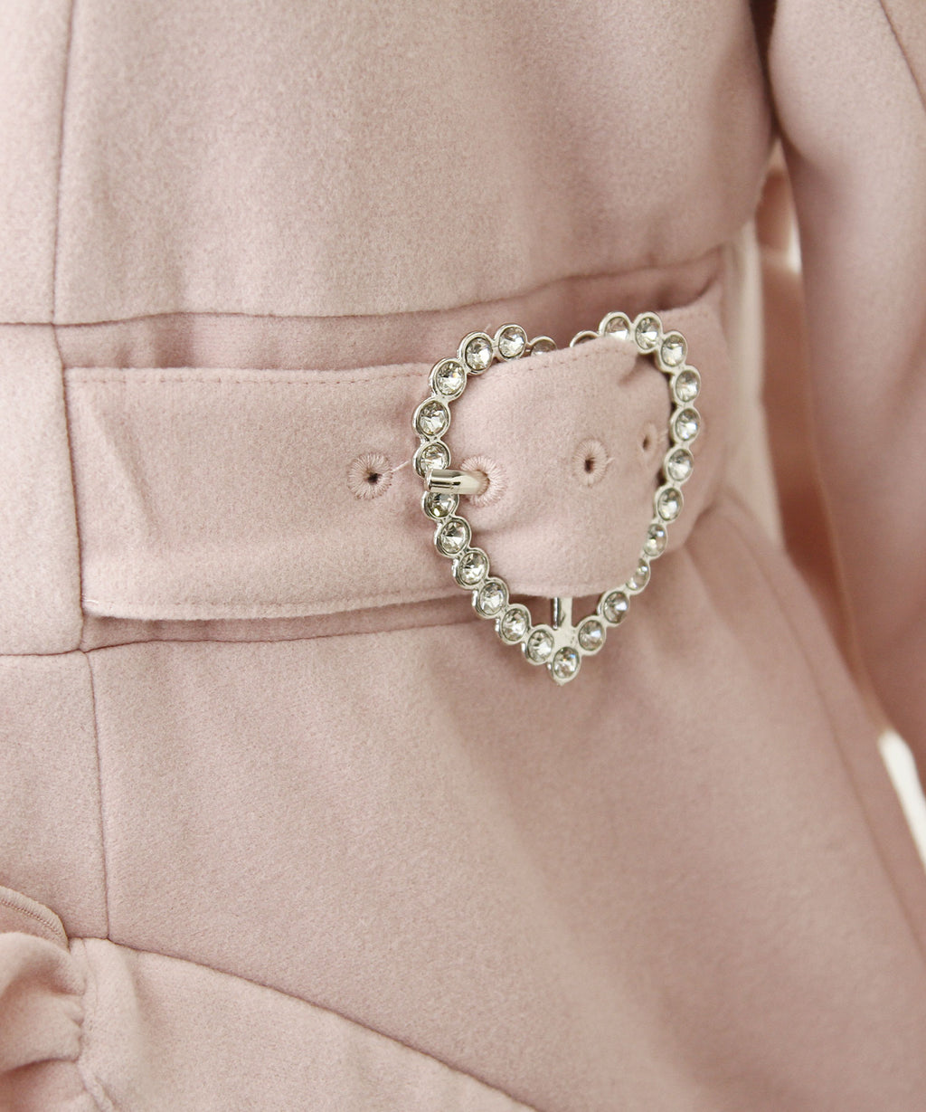 キラキラ輝くハートバックルリボンにときめく、定番Aラインコート