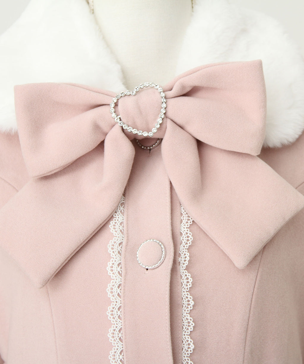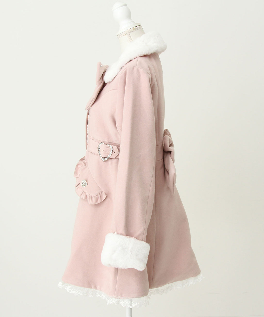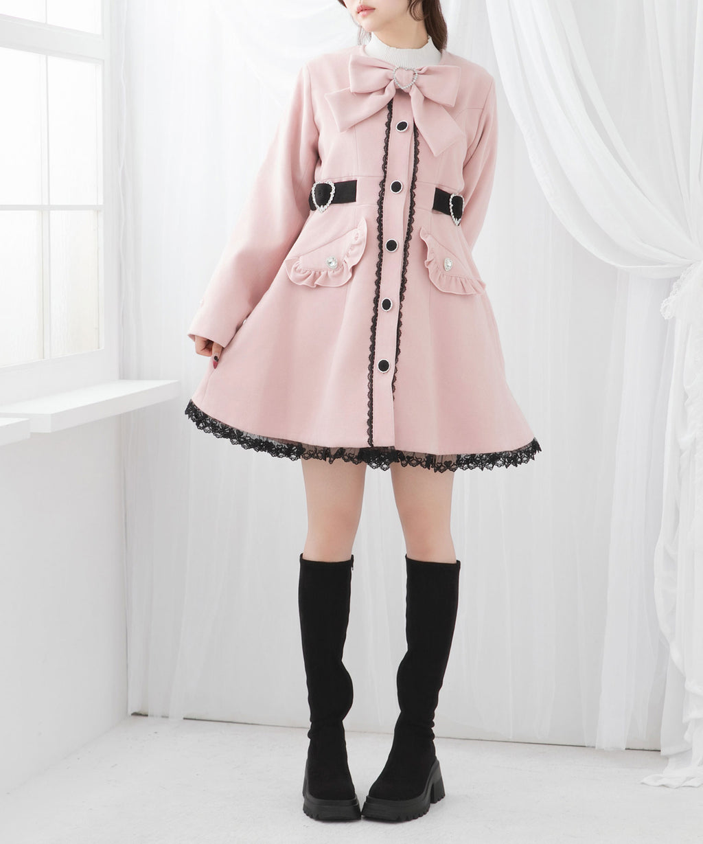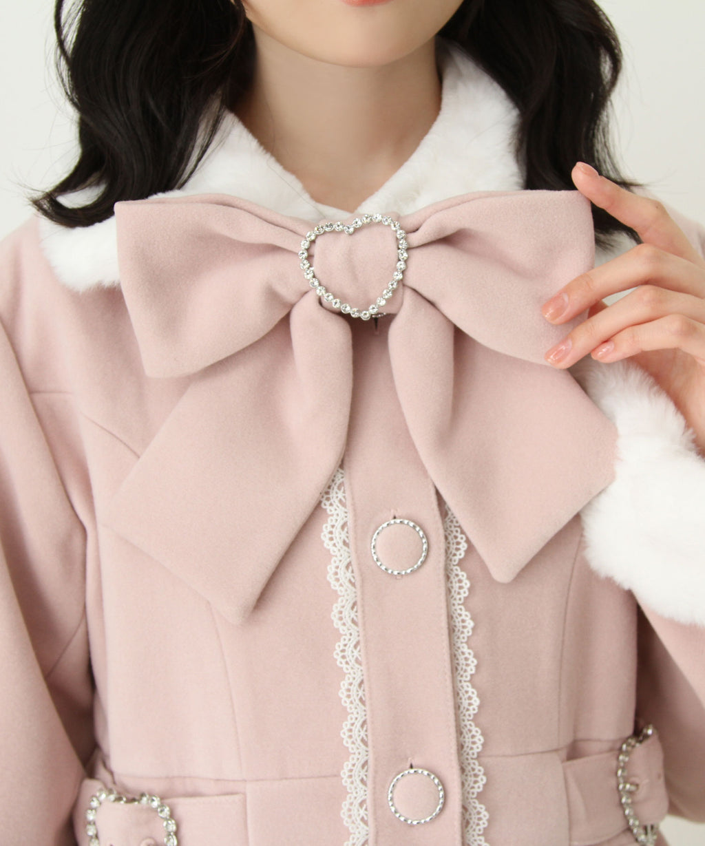 キラキラ輝くハートバックルリボンにときめく、定番Aラインコート