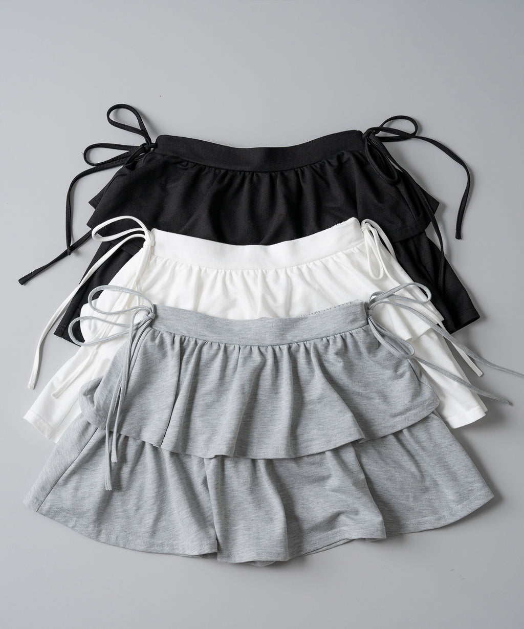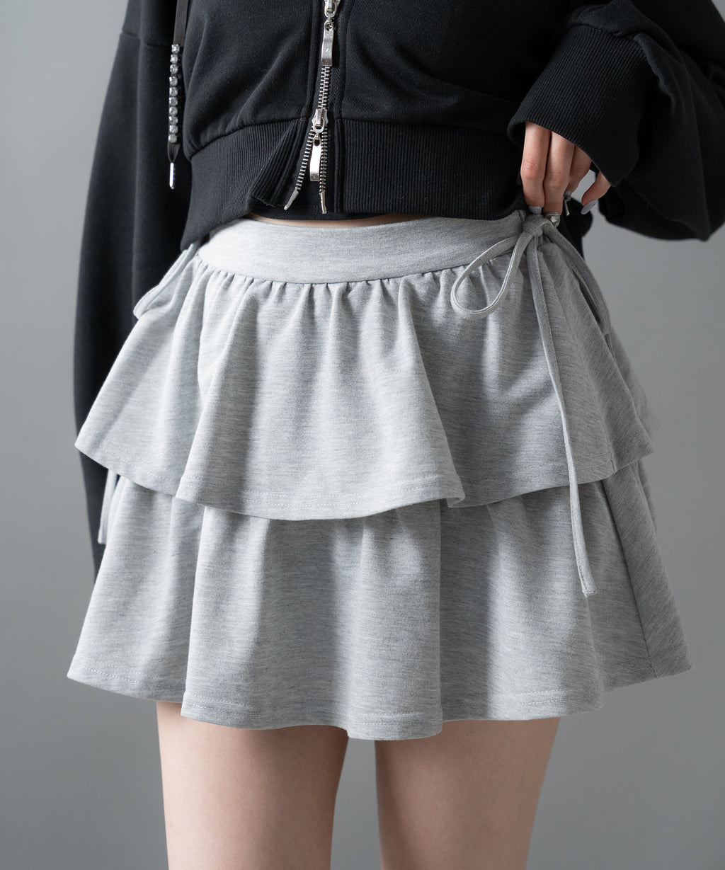 ボリュームのある二段フリルが動くたびに女性らしさを演出してくれるアイテム。