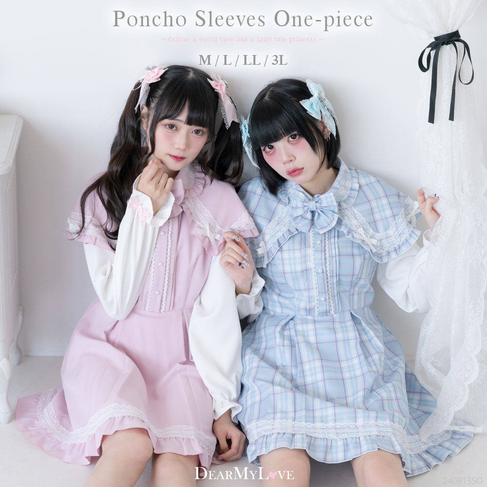 ポンチョの裾にちりばめられたリボンがかわいすぎるワンピースです♪