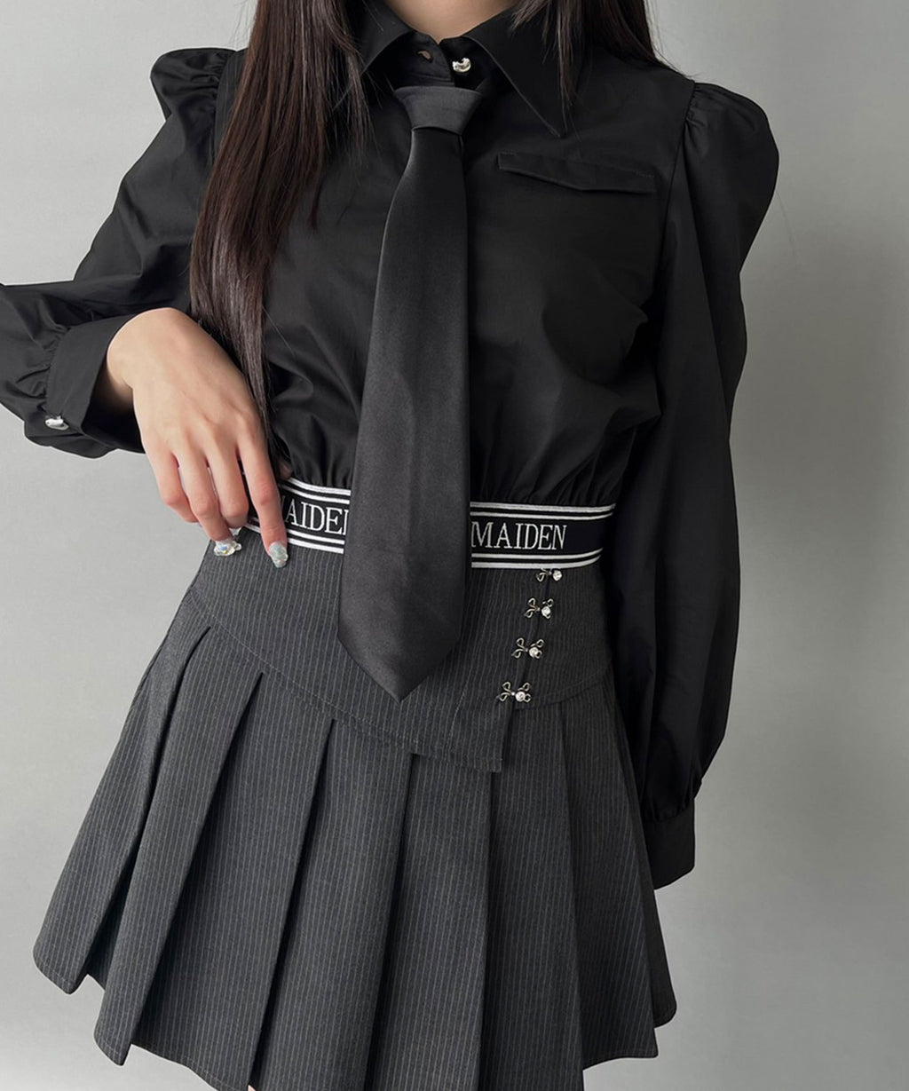 軽い着心地の綿素材で仕立てたブラウスとネクタイがセットになったスタイリッシュなアイテム。