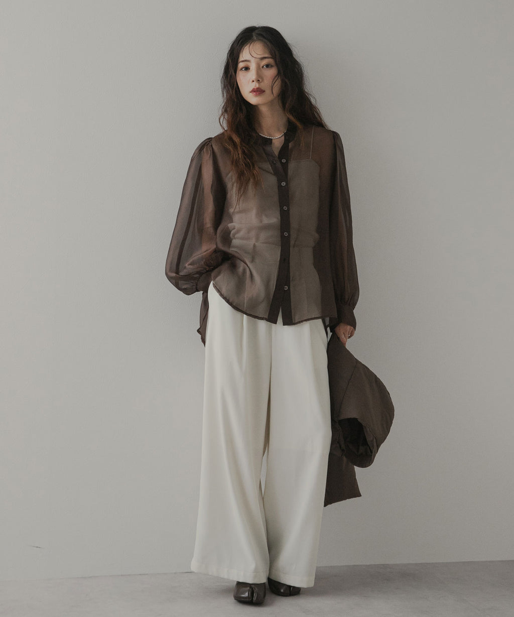 同系色のアウターと合わせればスタイリッシュな着こなしに。