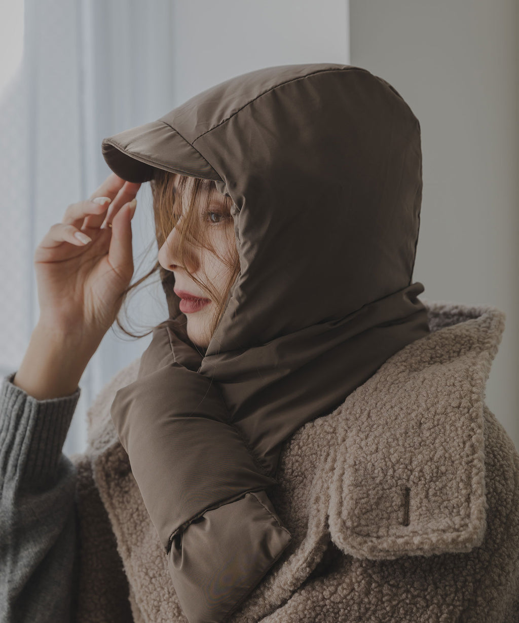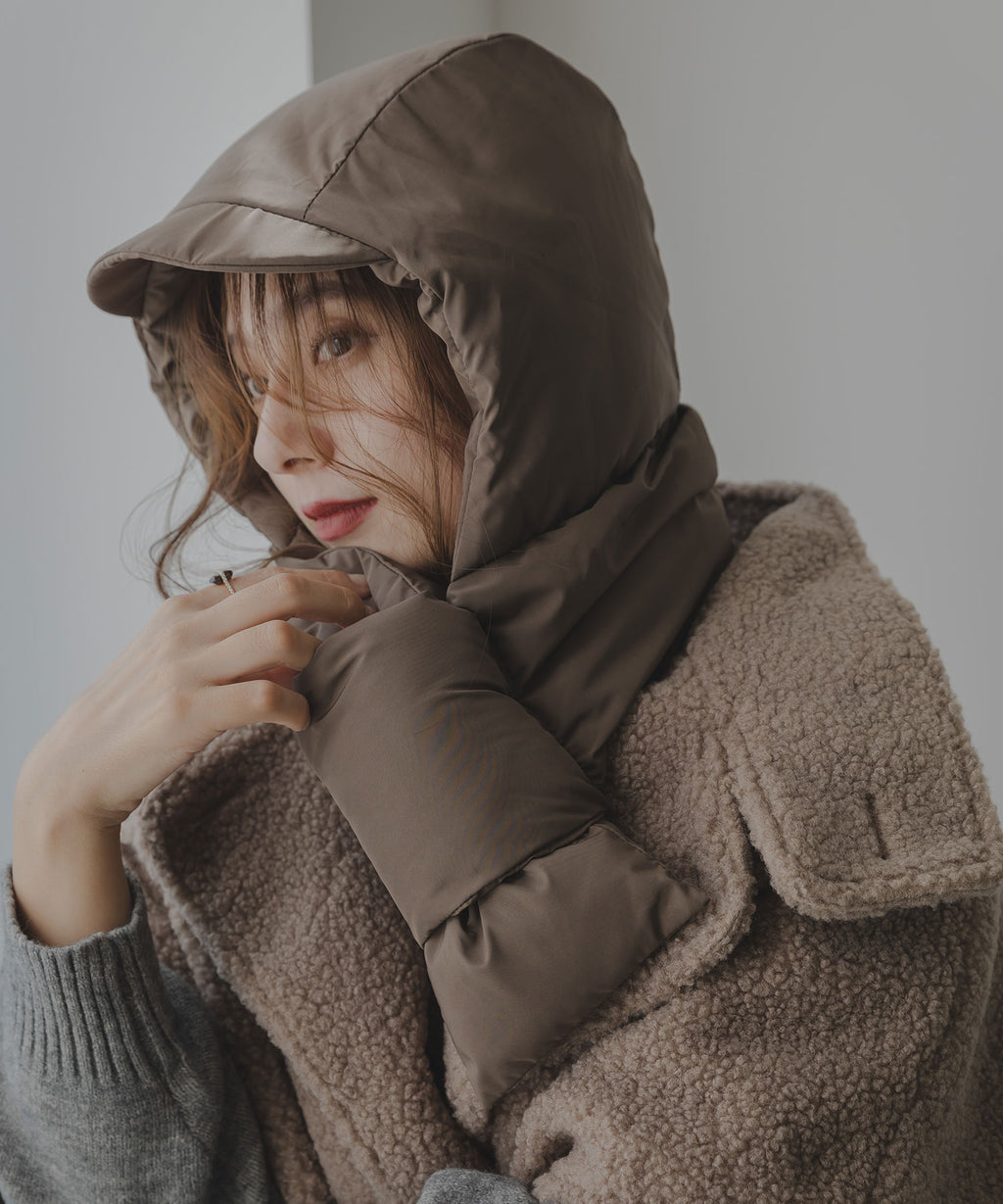 頭、耳、首全体を覆ってくれるマフラーキャップ。