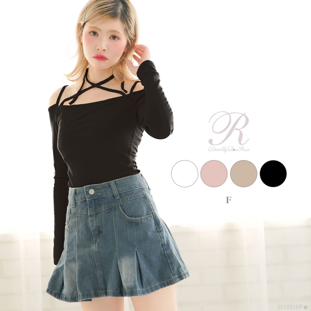 オフショルデザインになっているので、ベアトップタイプのインナーのご着用がおすすめです。