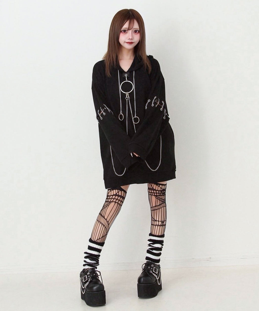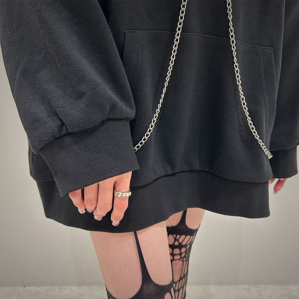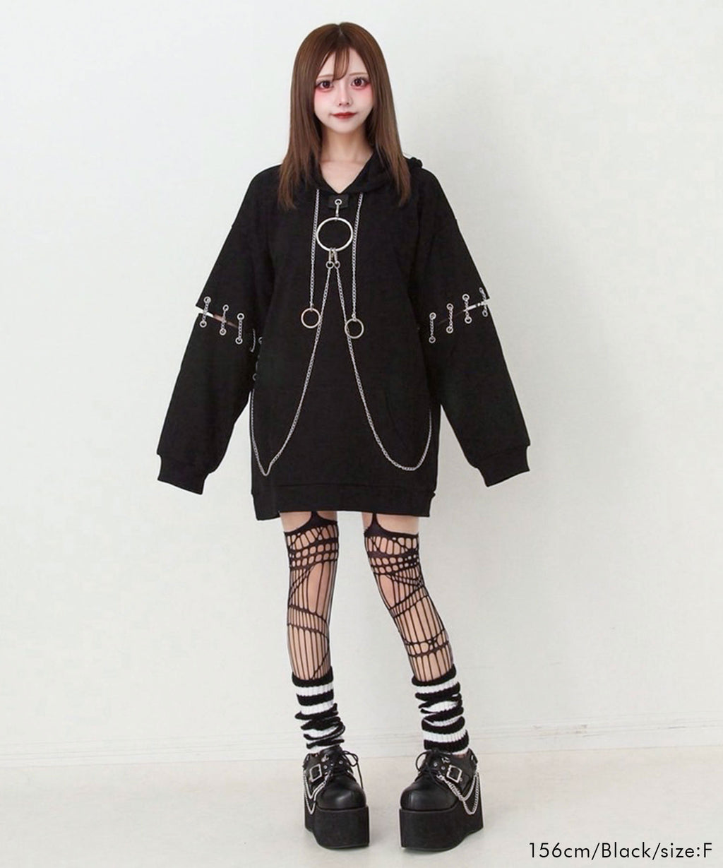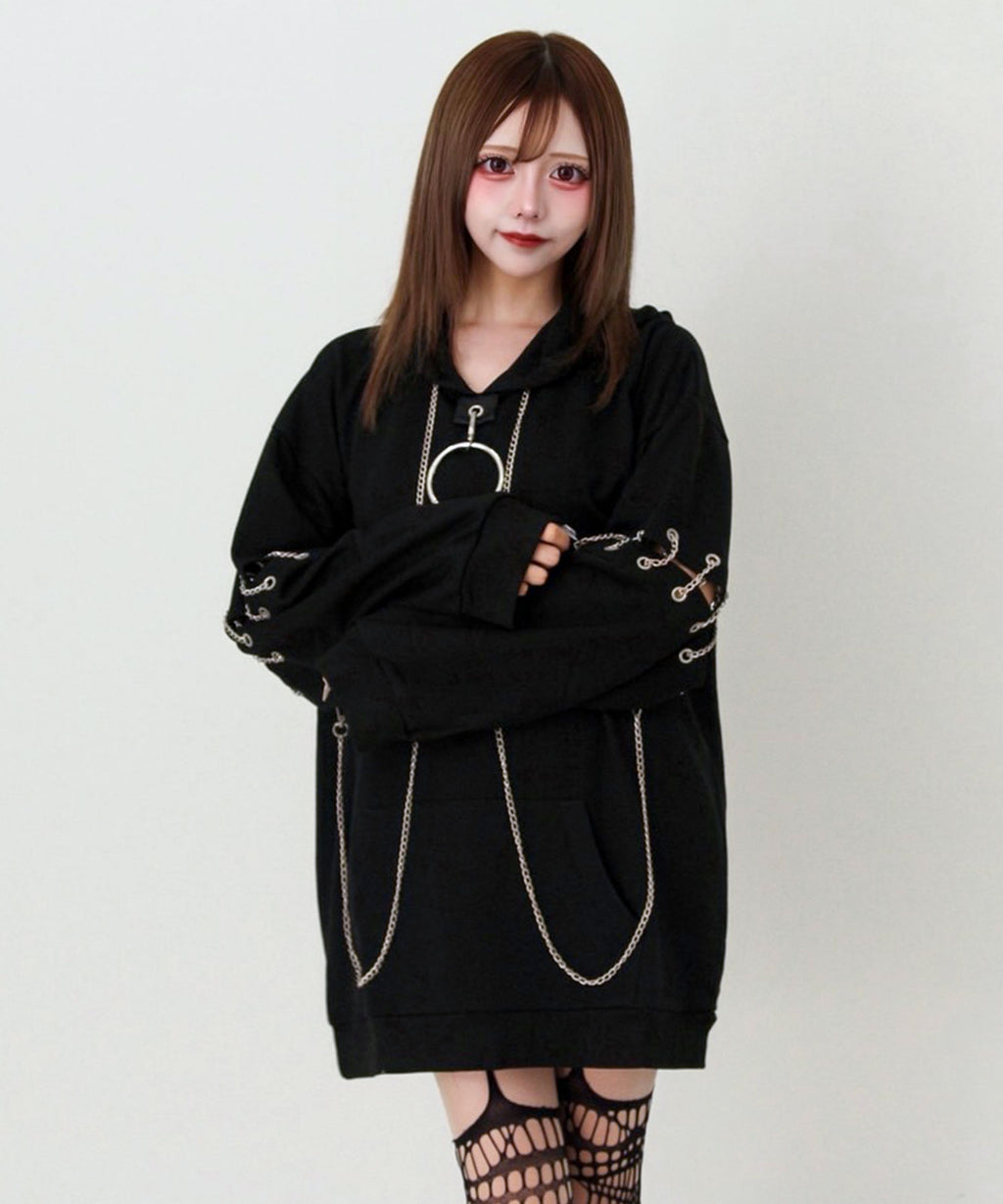 胸元の大きな丸カンとチェーンを散りばめたビッグパーカー