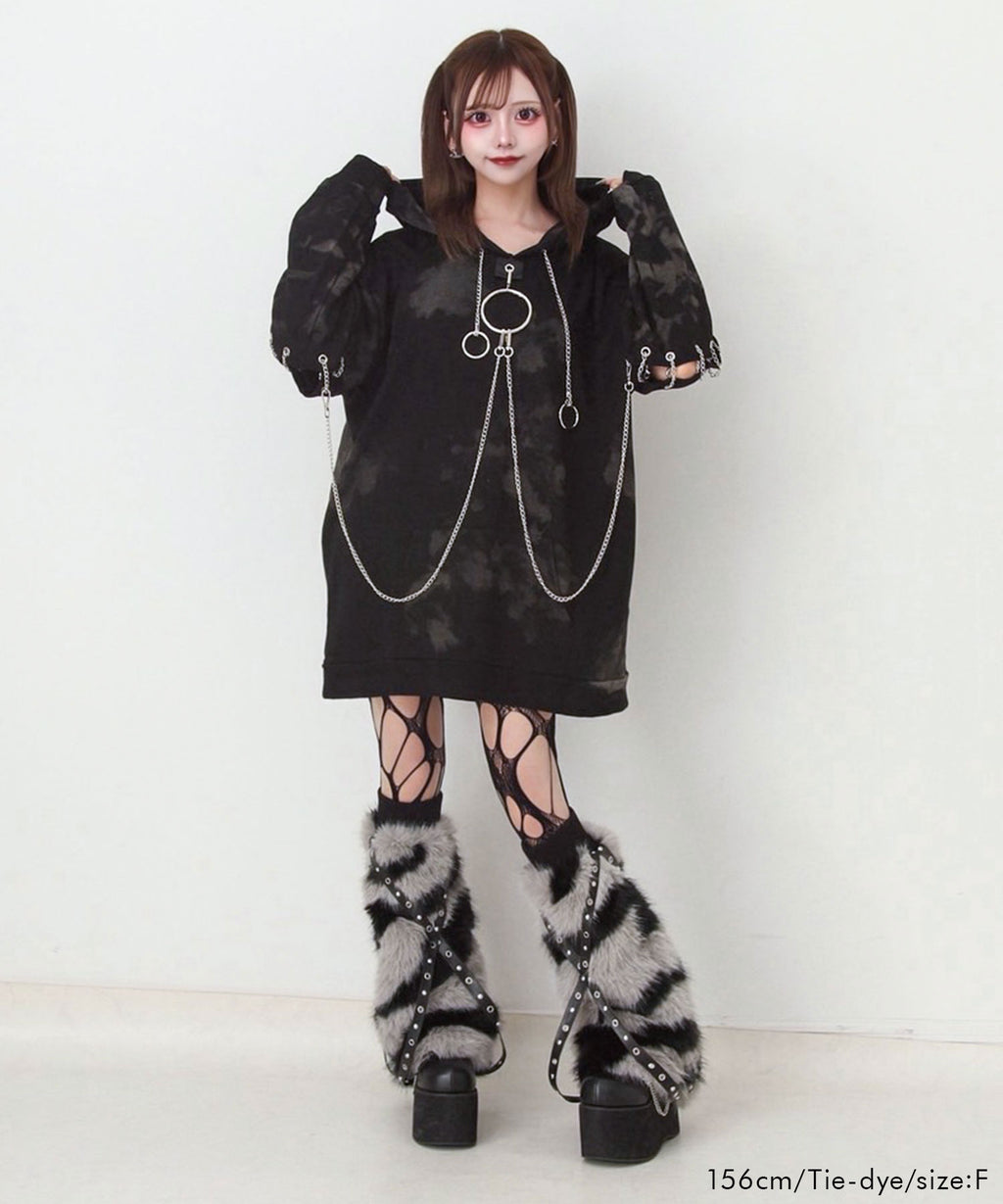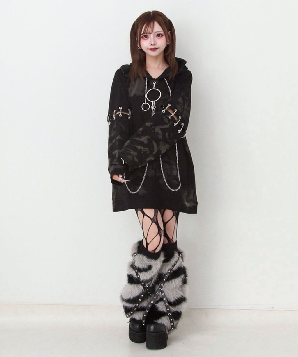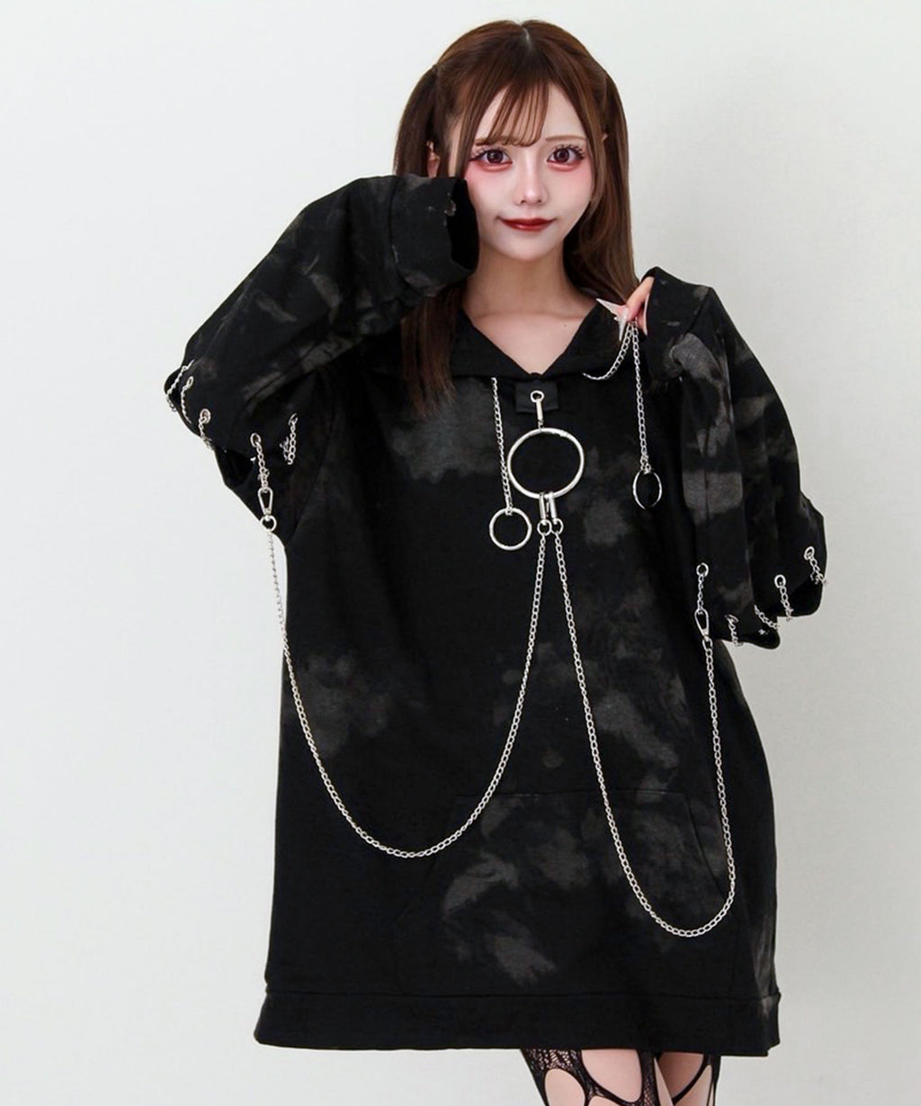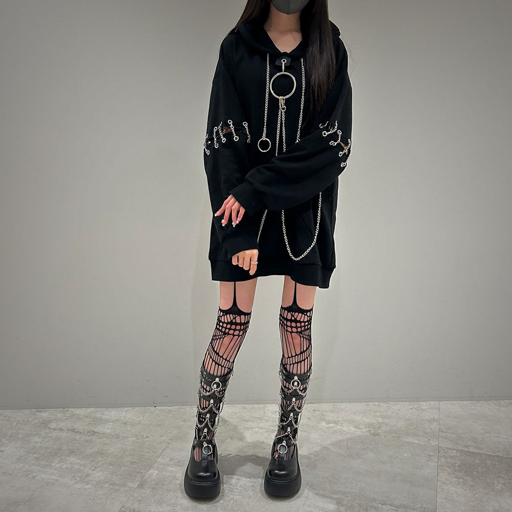 胸元の大きな丸カンとチェーンを散りばめたビッグパーカー