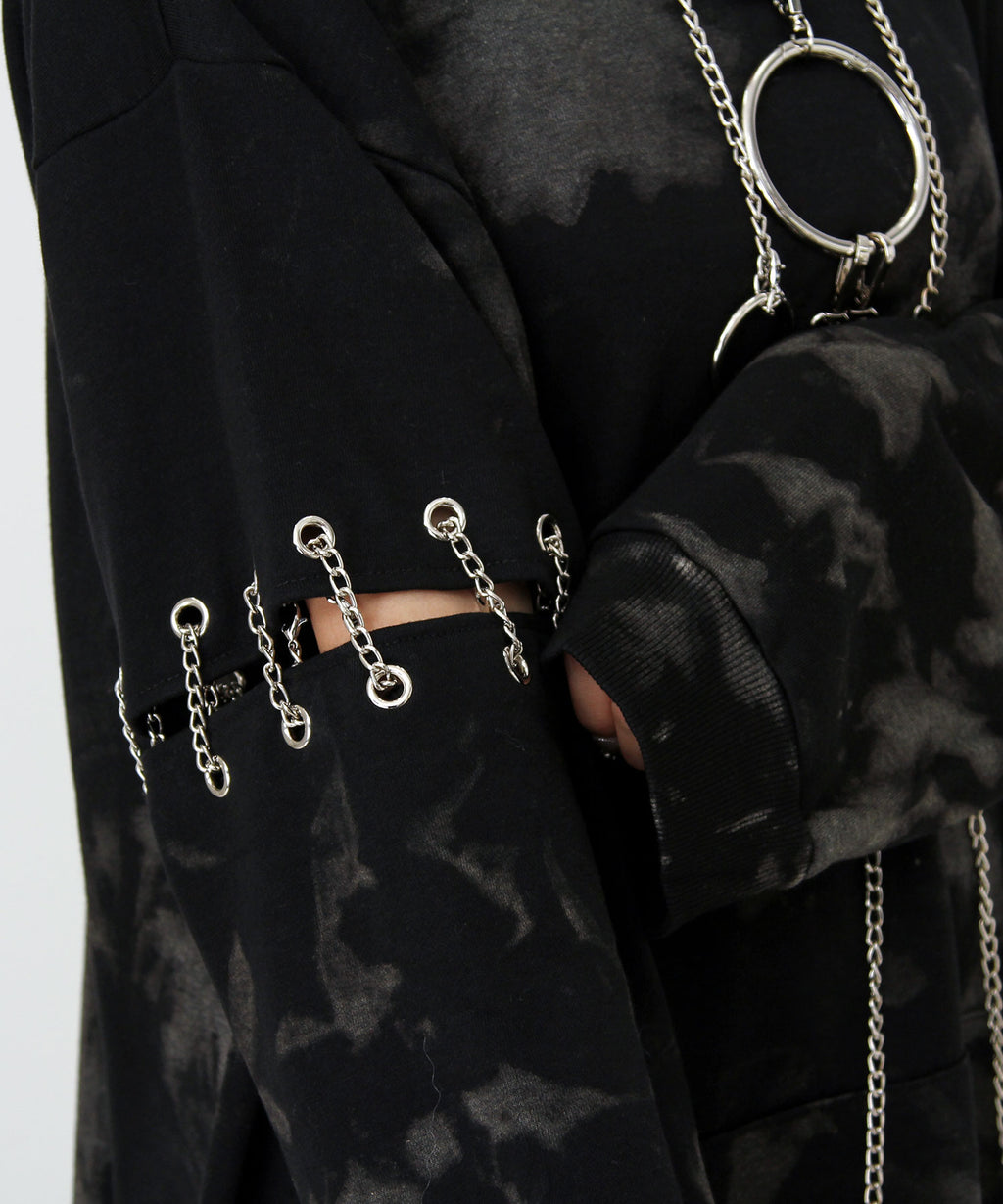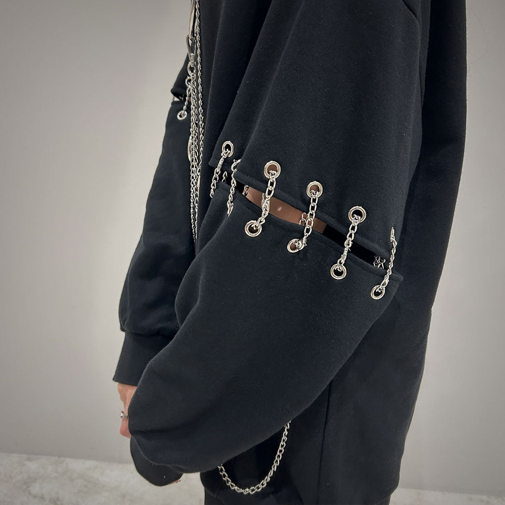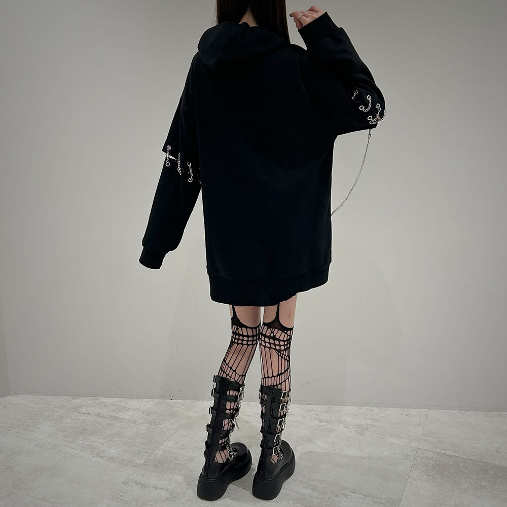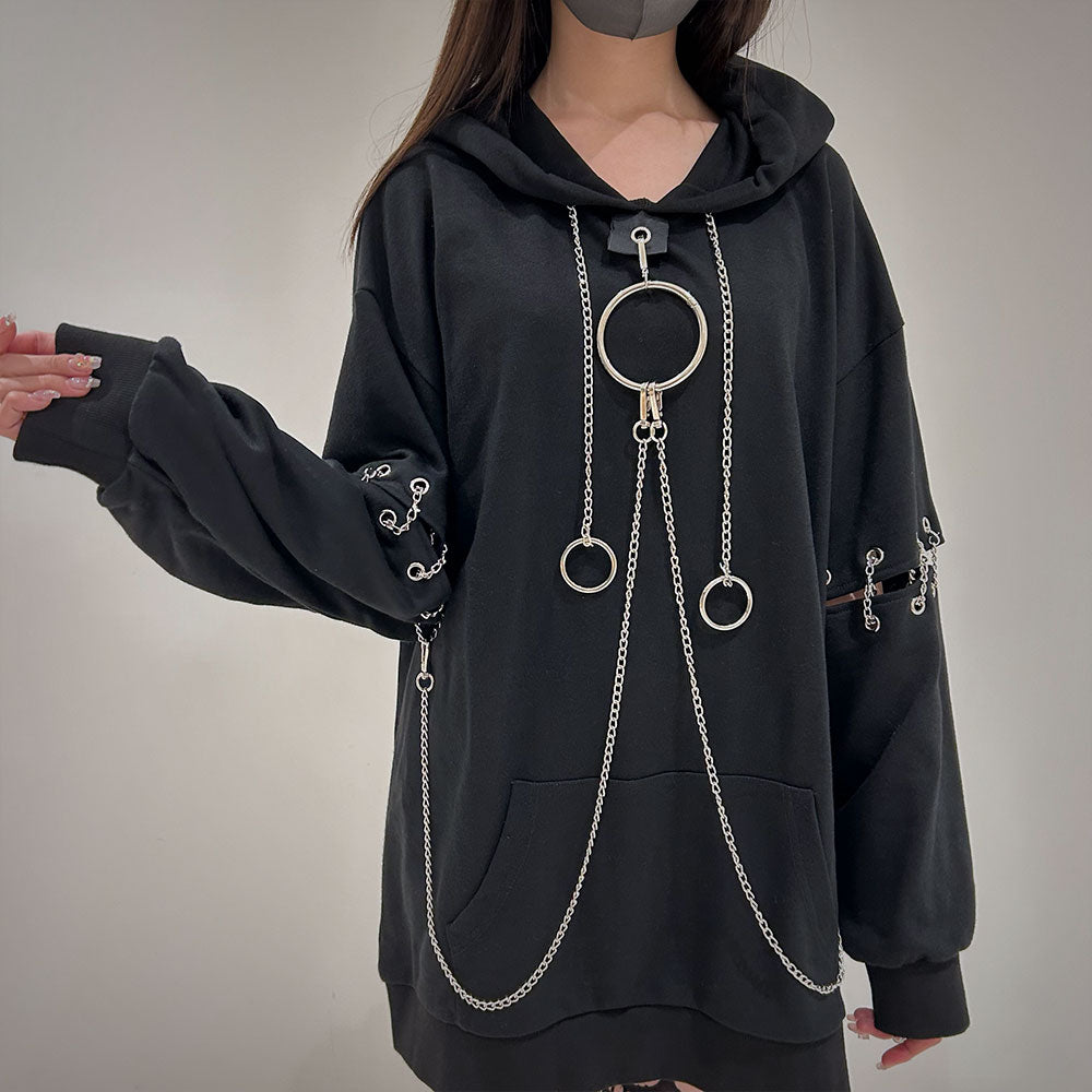 胸元の大きな丸カンとチェーンを散りばめたビッグパーカー