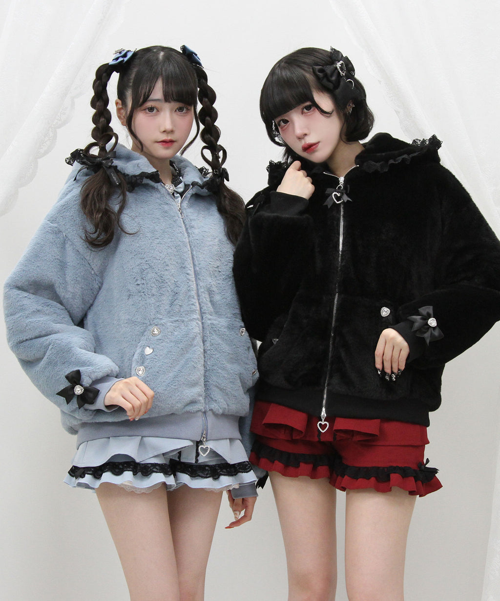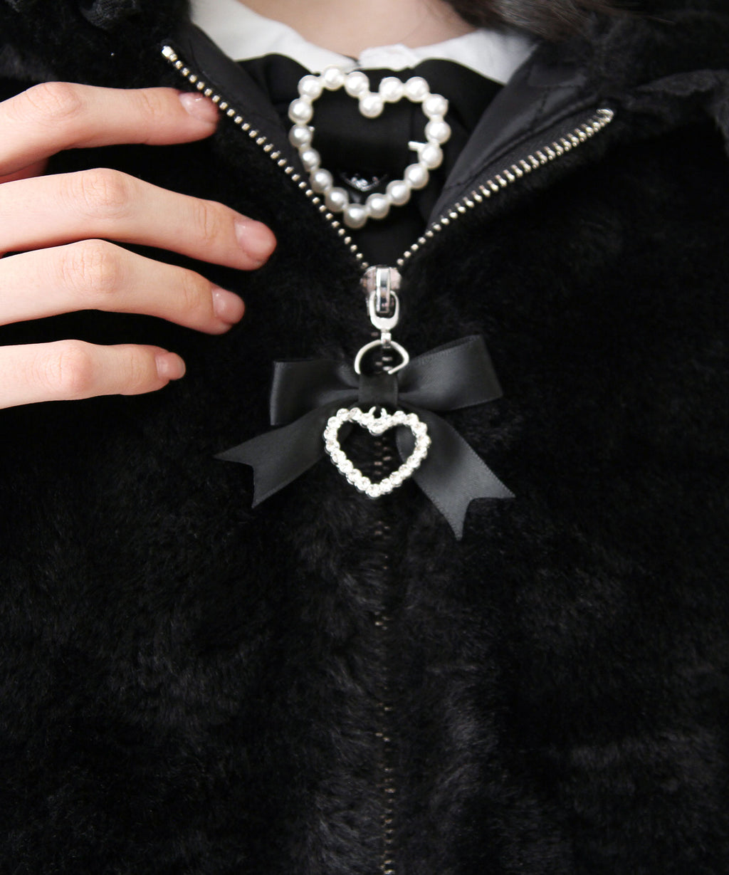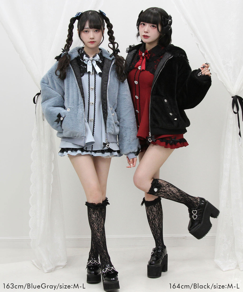フードにはかわいいハートレースがあしらわれています。