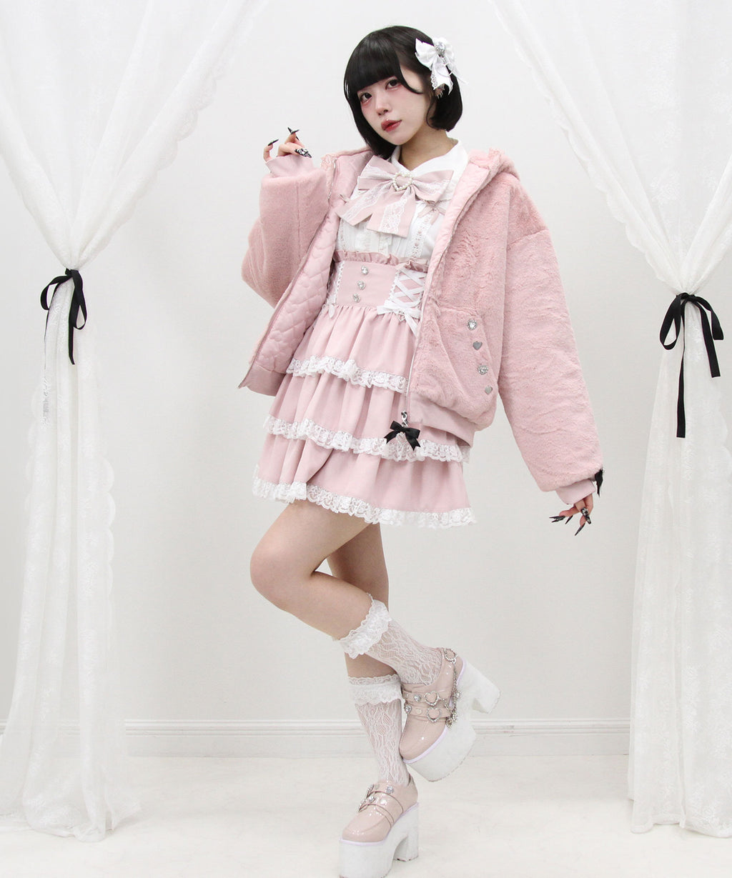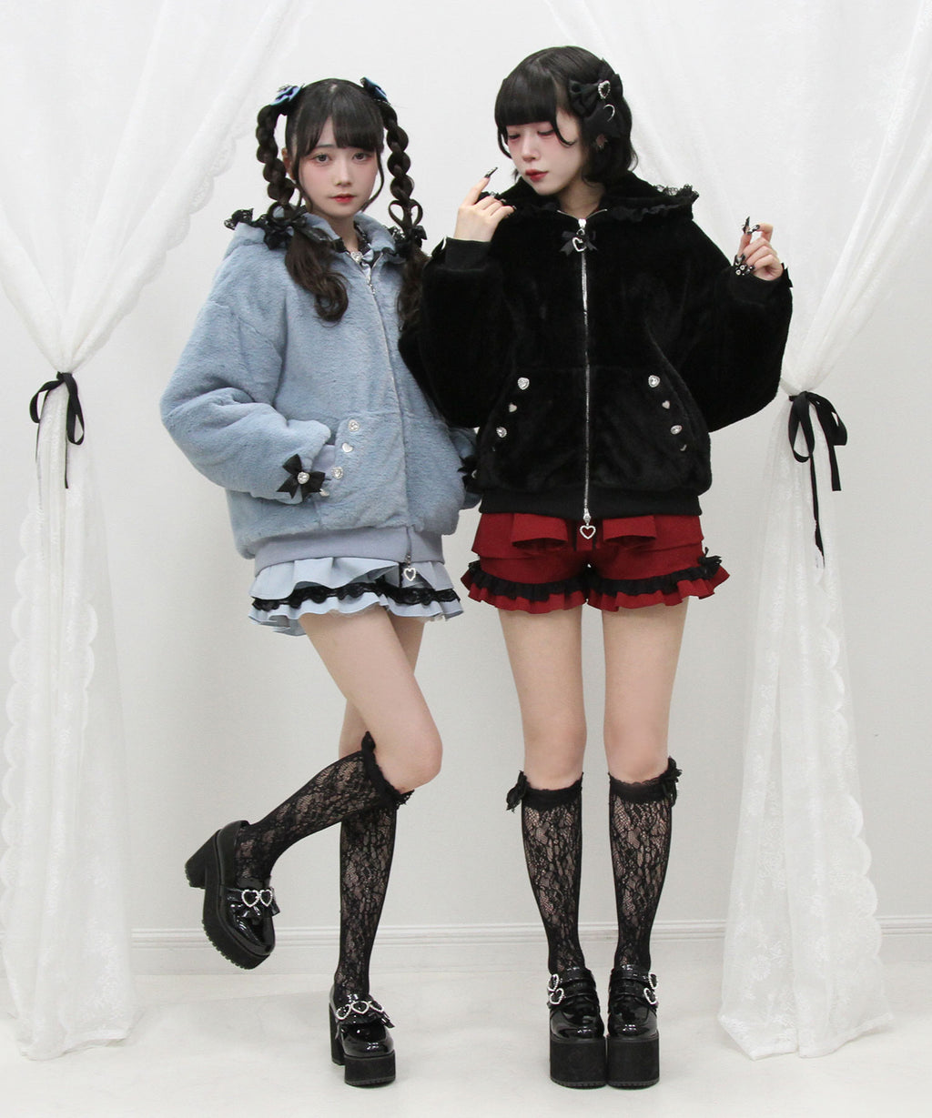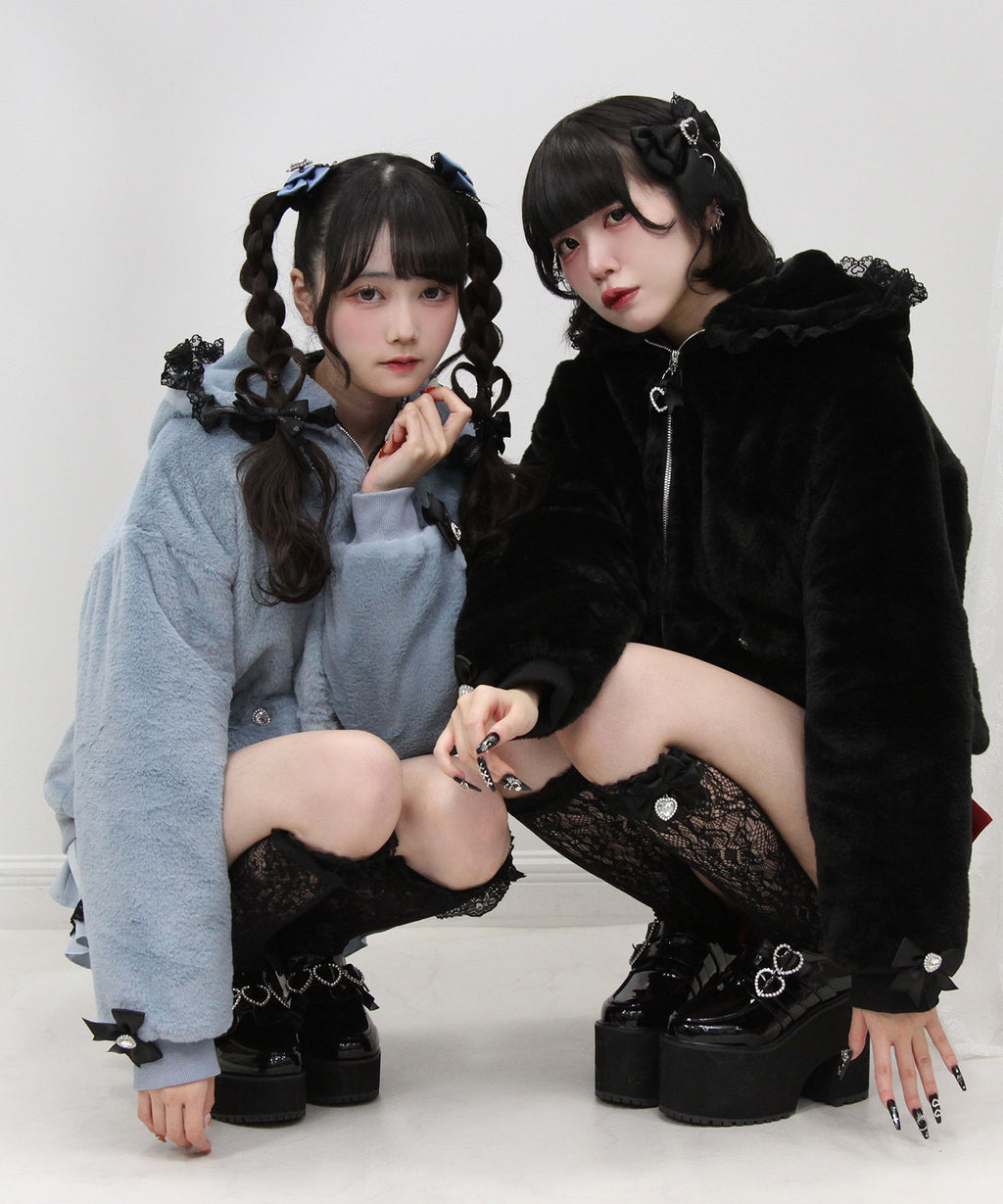 フードにはかわいいハートレースがあしらわれています。