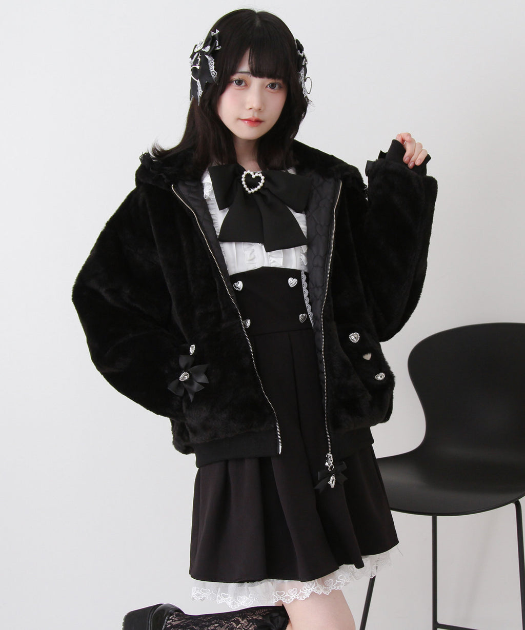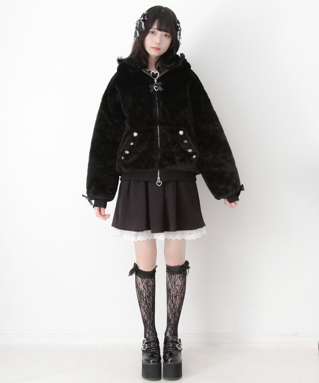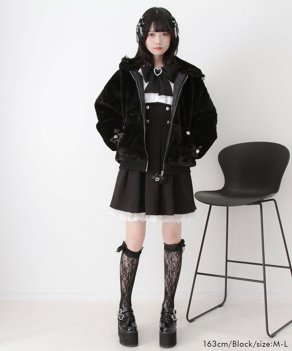 《素材》[ファー、裏地、レース]ポリエステル : 100% / [リブ]綿 : 100% /