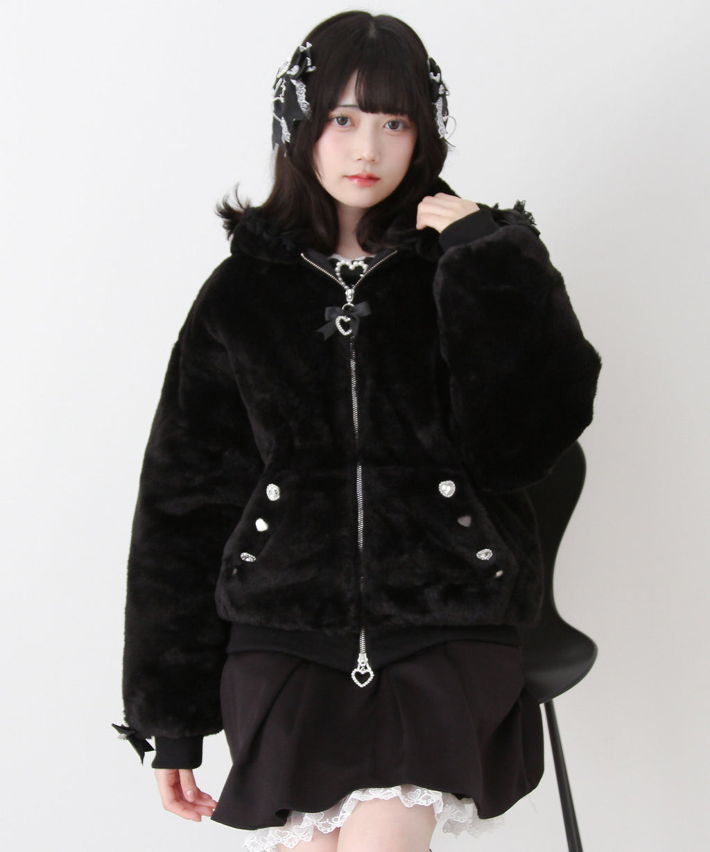 ポケットや袖口にキラキラしたビジューが散りばめられたかわいいファーブルゾンです♪