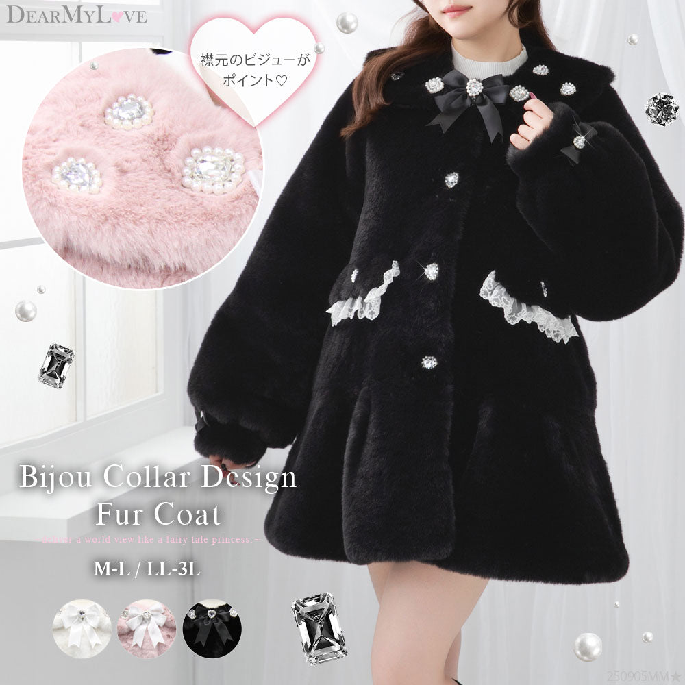 襟元の大きめキラキラビジューが散りばめられたかわいいファーコートです♪