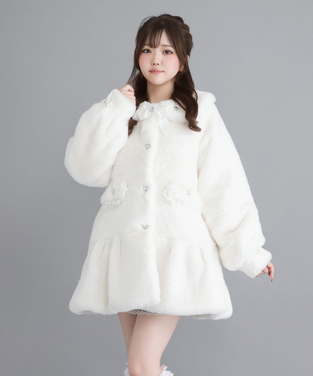 量産型コーデや甘めロリータ系コーデにぴったりのファーコートです。