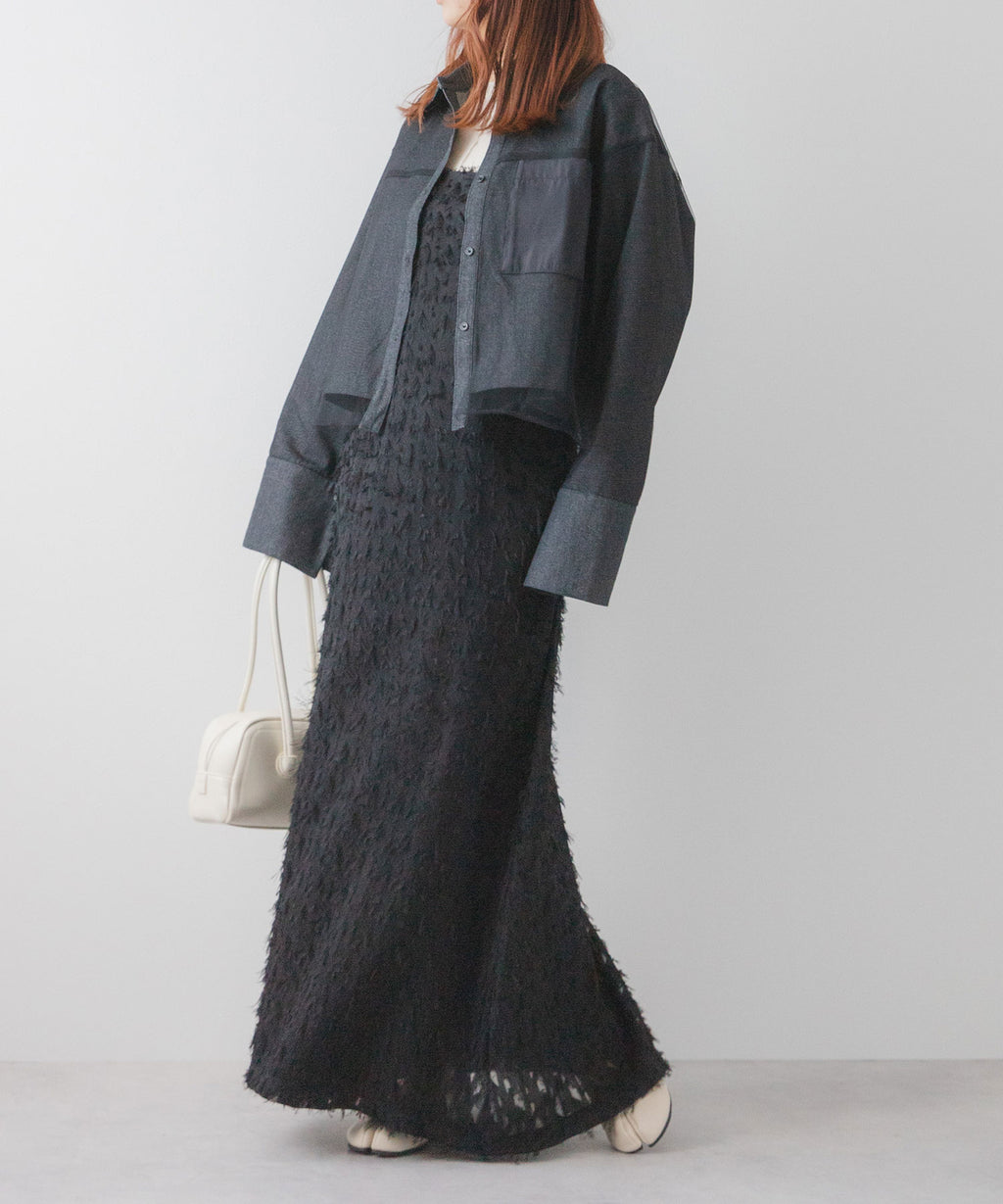 ワンピースやキャミソールの上にさらっと羽織れば、軽やかなレイヤードスタイルに。