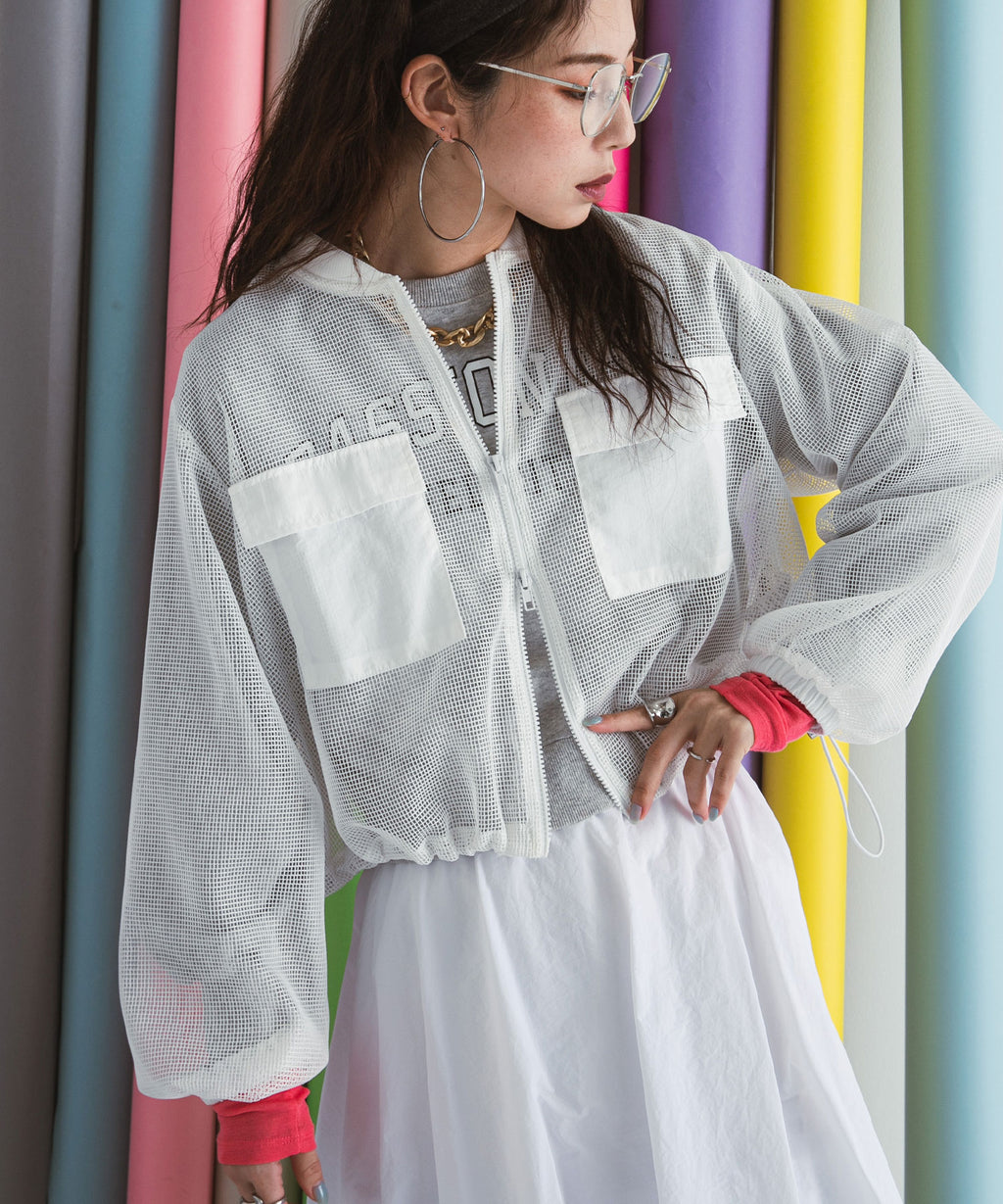 レイヤードも楽しめるメッシュブルゾン