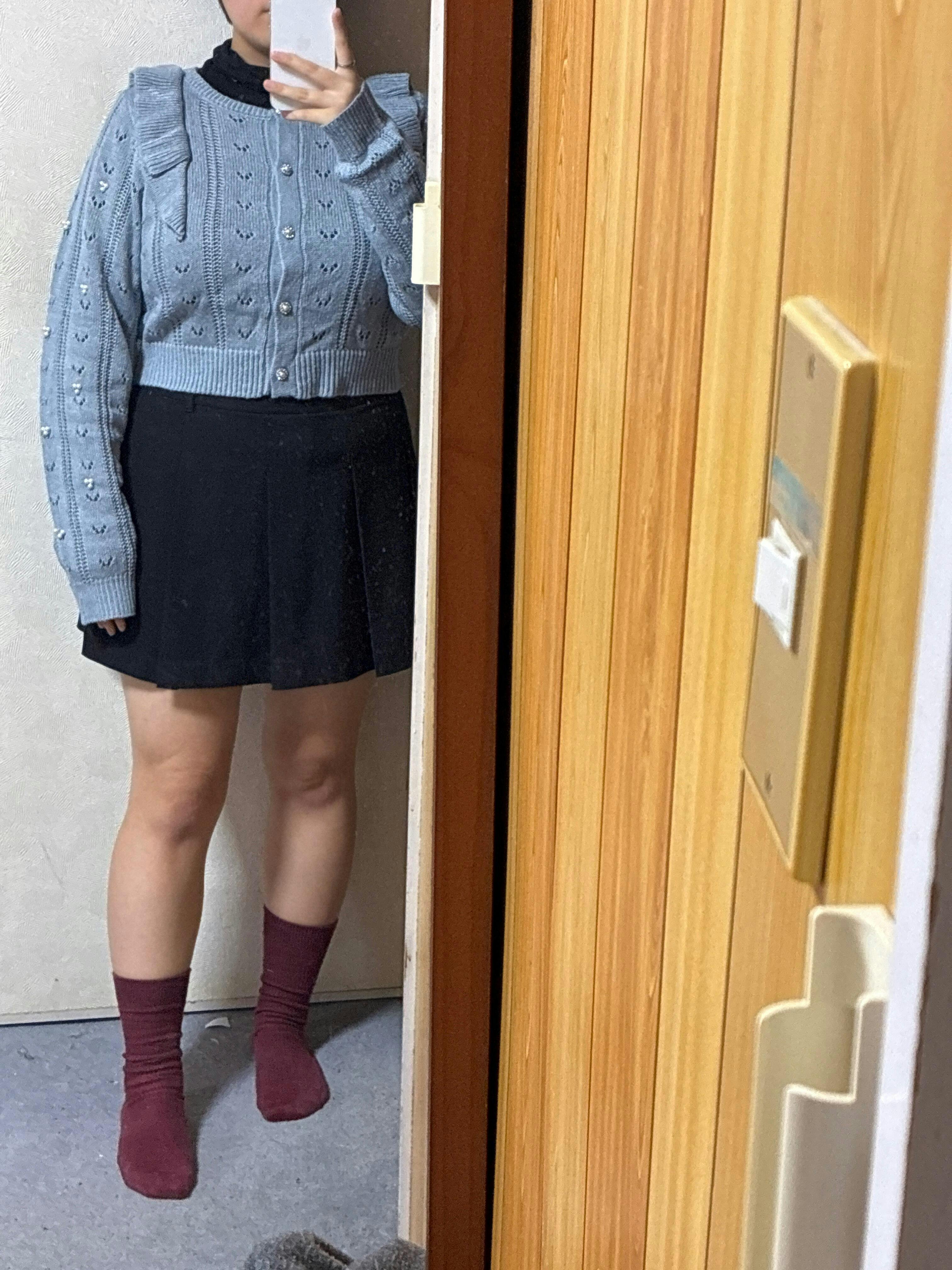 釦を閉めてプルオーバーとして着ても可愛いし、釦を開けてカーデとして羽織ってもOK♪