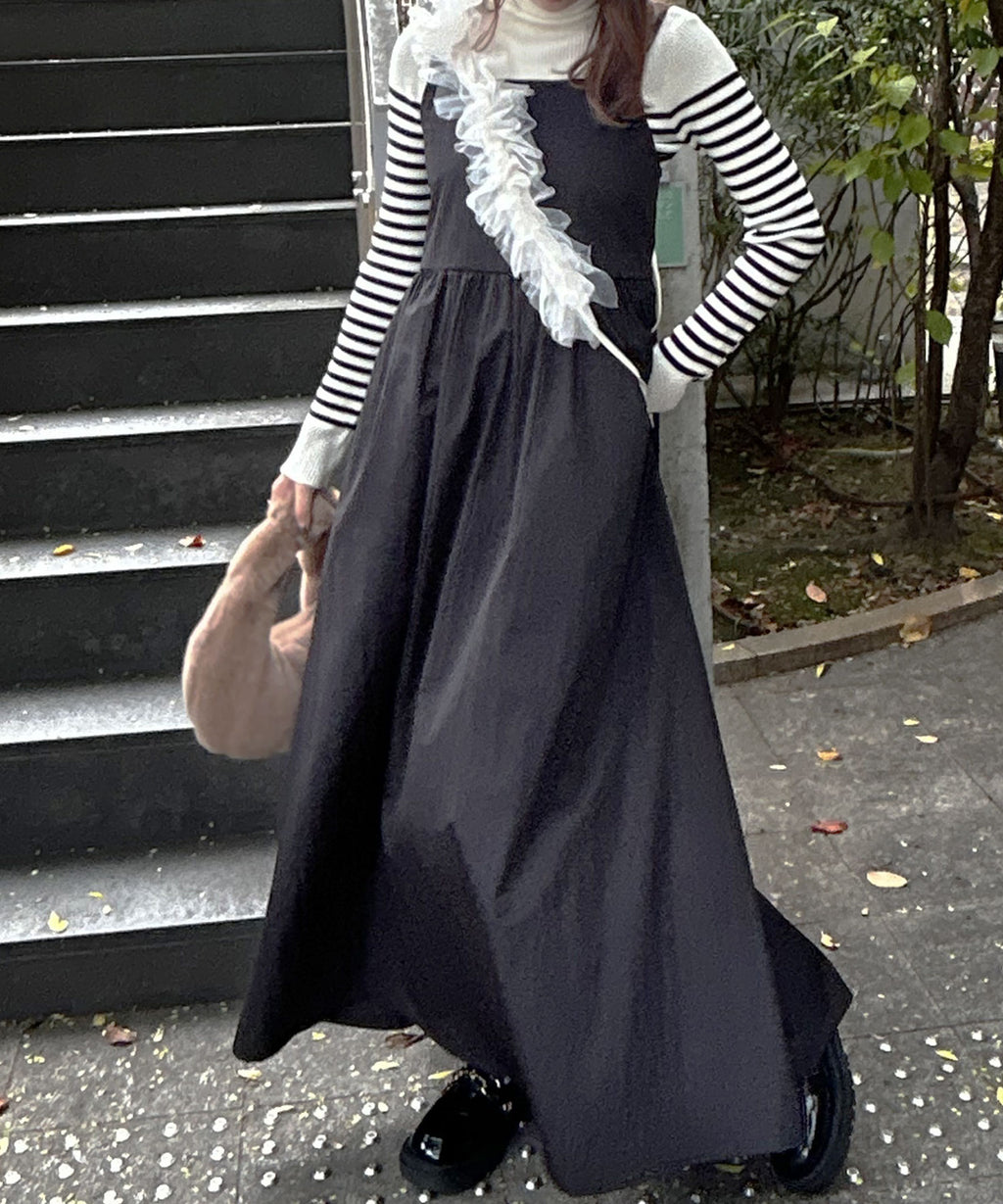 軽やかで程よい光沢感のあるタフタ素材のジャンスカワンピース。