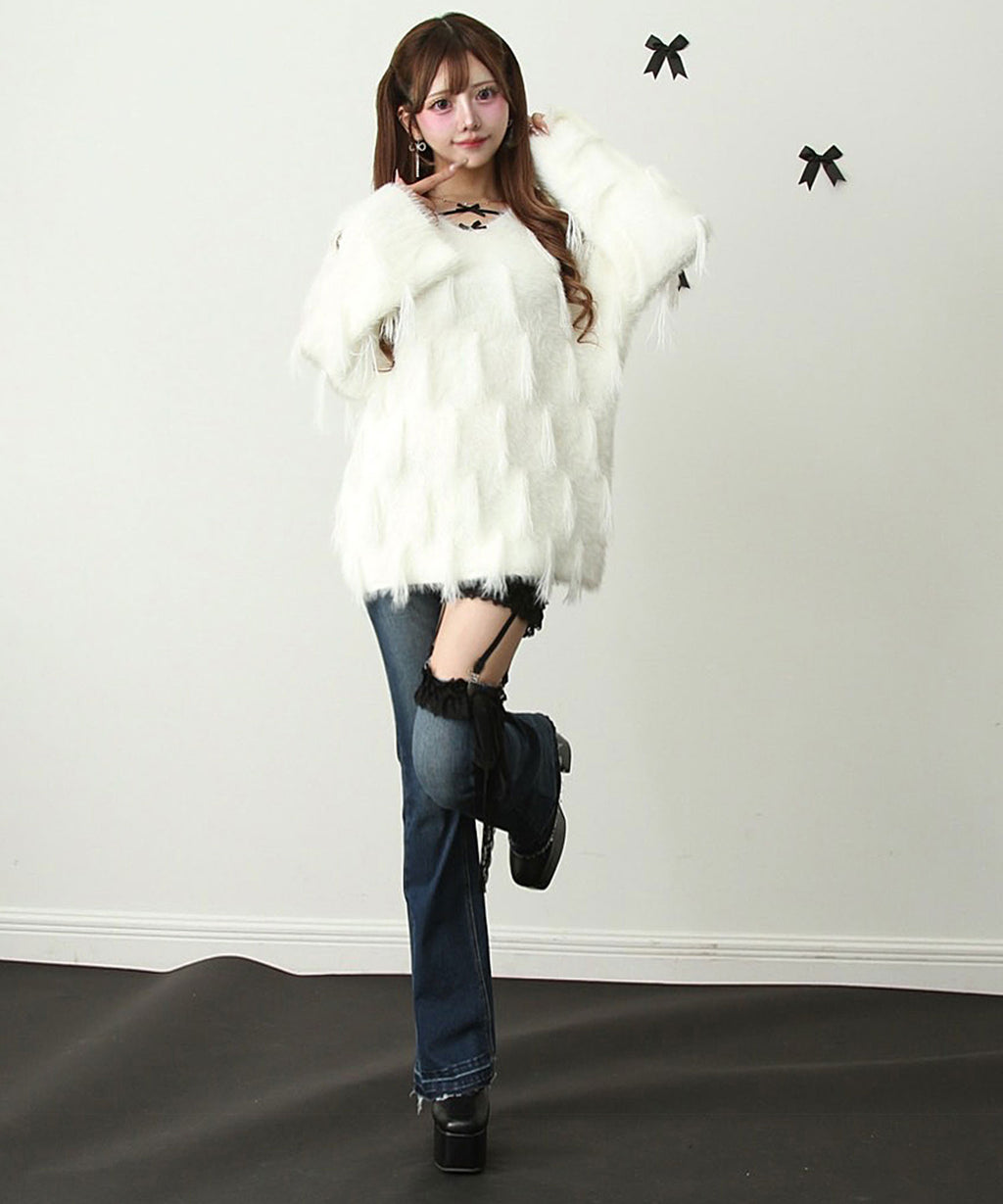カジュアルでリラックス感のある「ゆるシルエット」に、可愛い「フリンジ」を取り入れたニットトップスです。