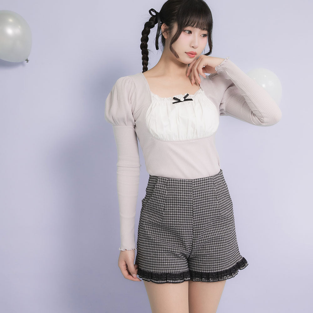 丸襟やボウタイ等のブラウスと相性抜群!簡単にフレンチガーリーなスタイルが完成します。