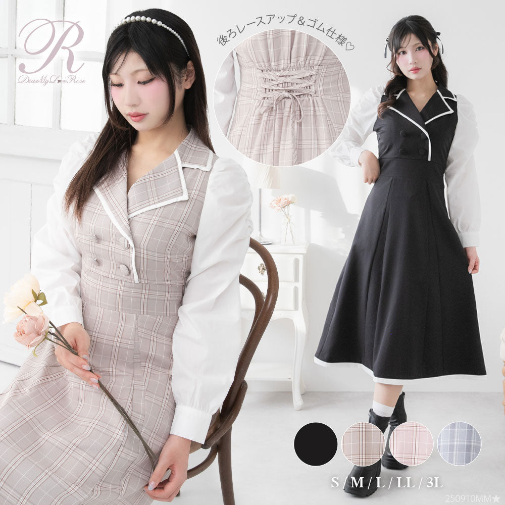 テーラードデザイン異素材ドッキングワンピースのご紹介。