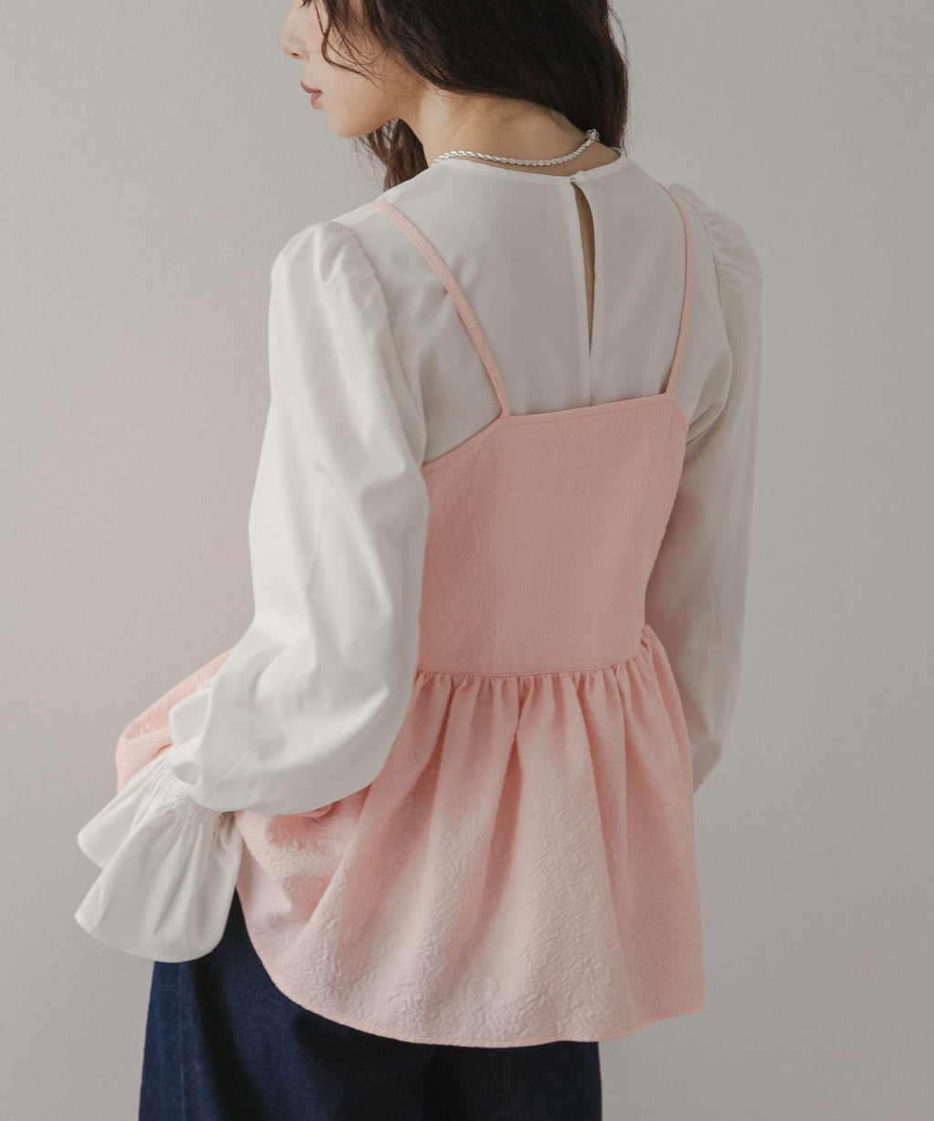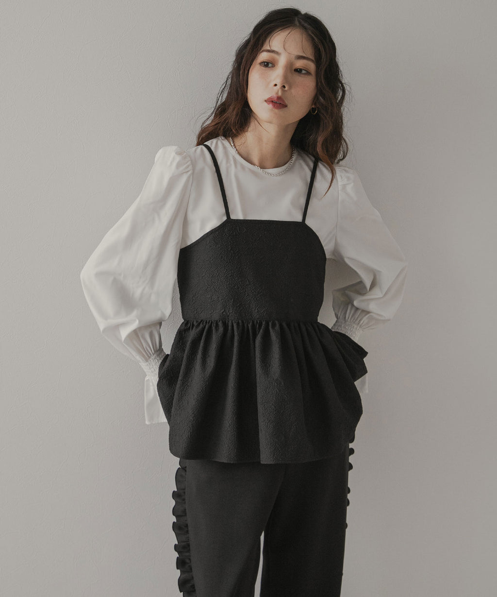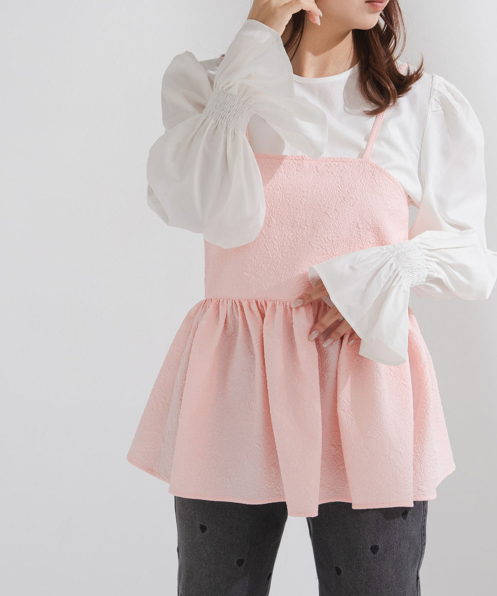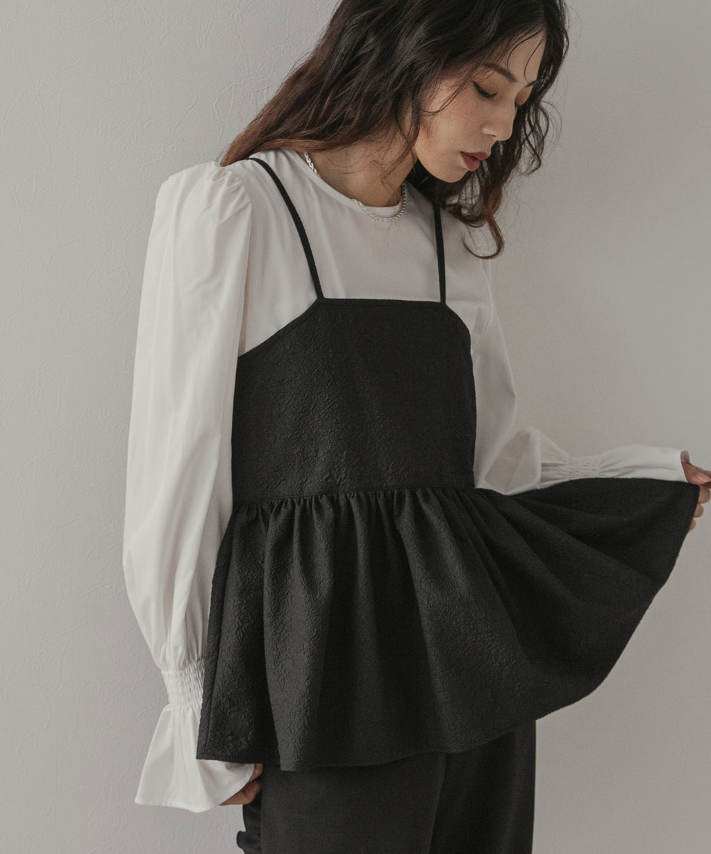 立体感のあるジャガードデザインで前後2wayやたすき掛け、ビスチェなどマルチな着こなしが叶うキャミソール。