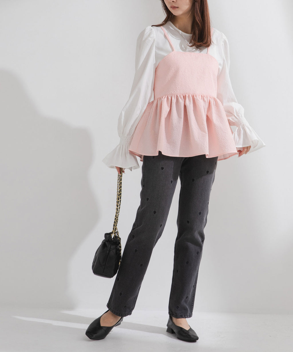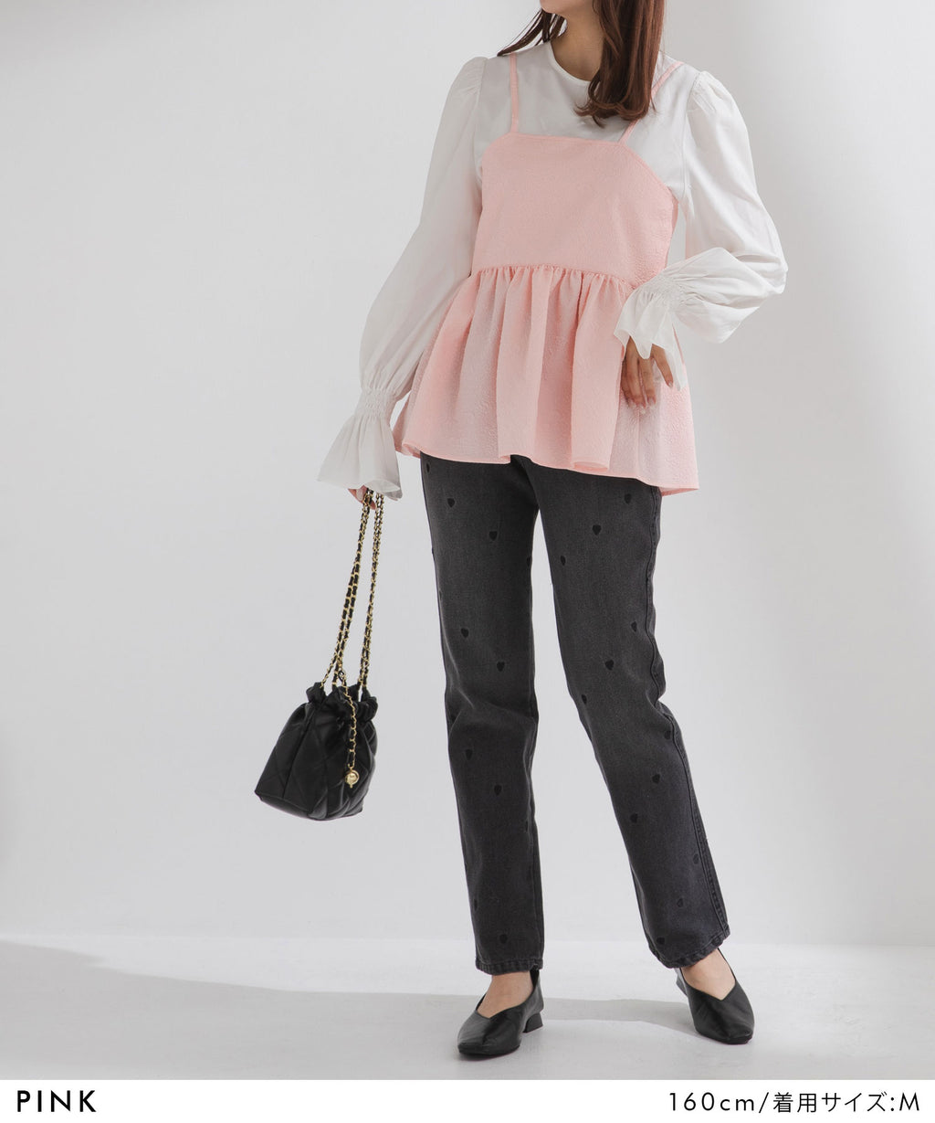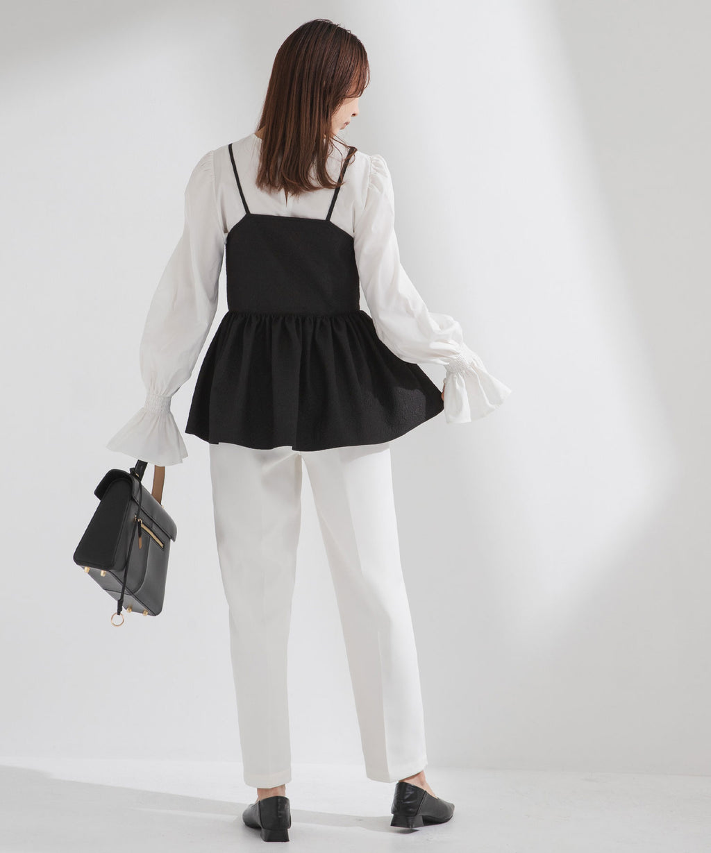 キャミワンピなど幅広いアイテムとも合わせやすく着回しのしやすいブラウス。