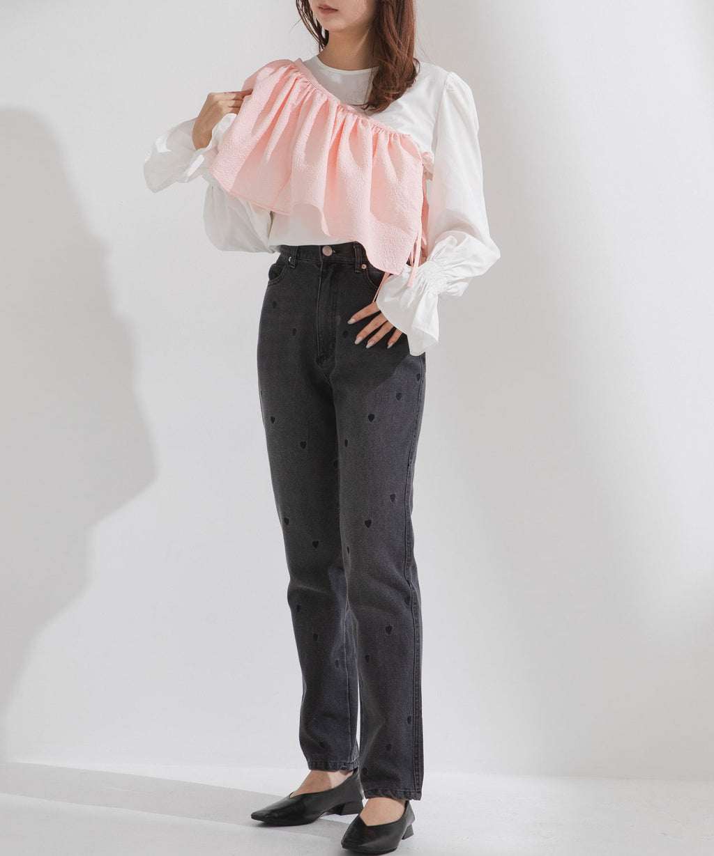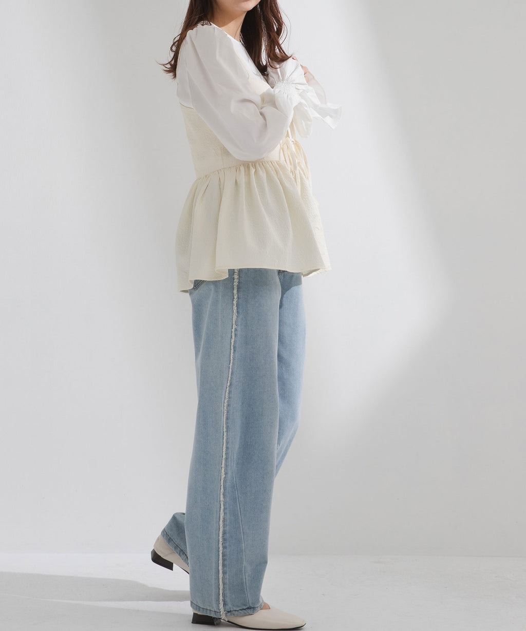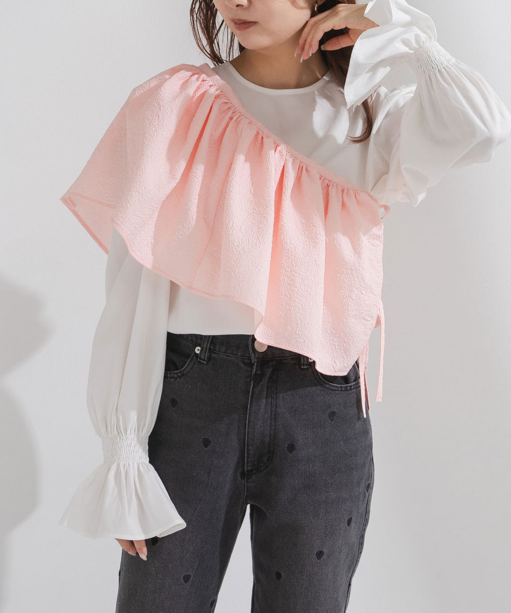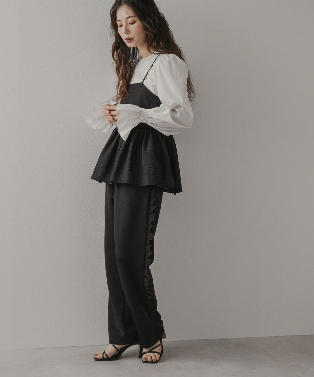 キャミワンピなど幅広いアイテムとも合わせやすく着回しのしやすいブラウス。