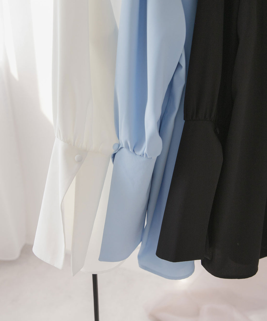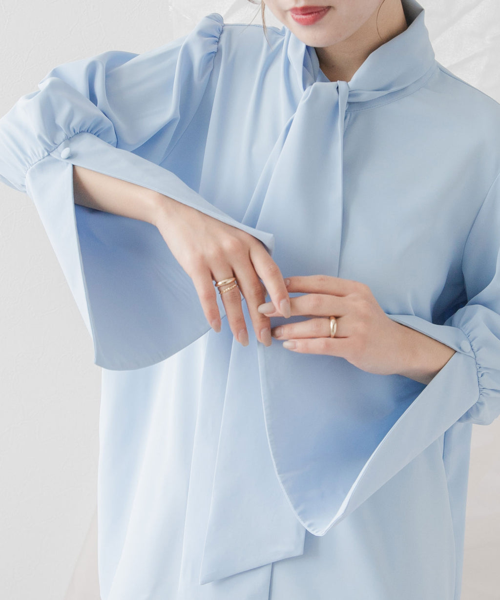 シンプルながらパフ袖やロングカフスがワンポイントとなりデイリーコーデにも◎