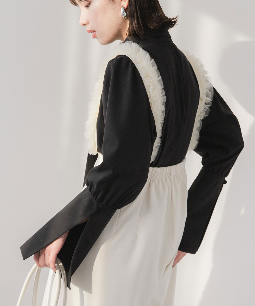 オケージョンやフォーマルシーンのブラウスとして大活躍。