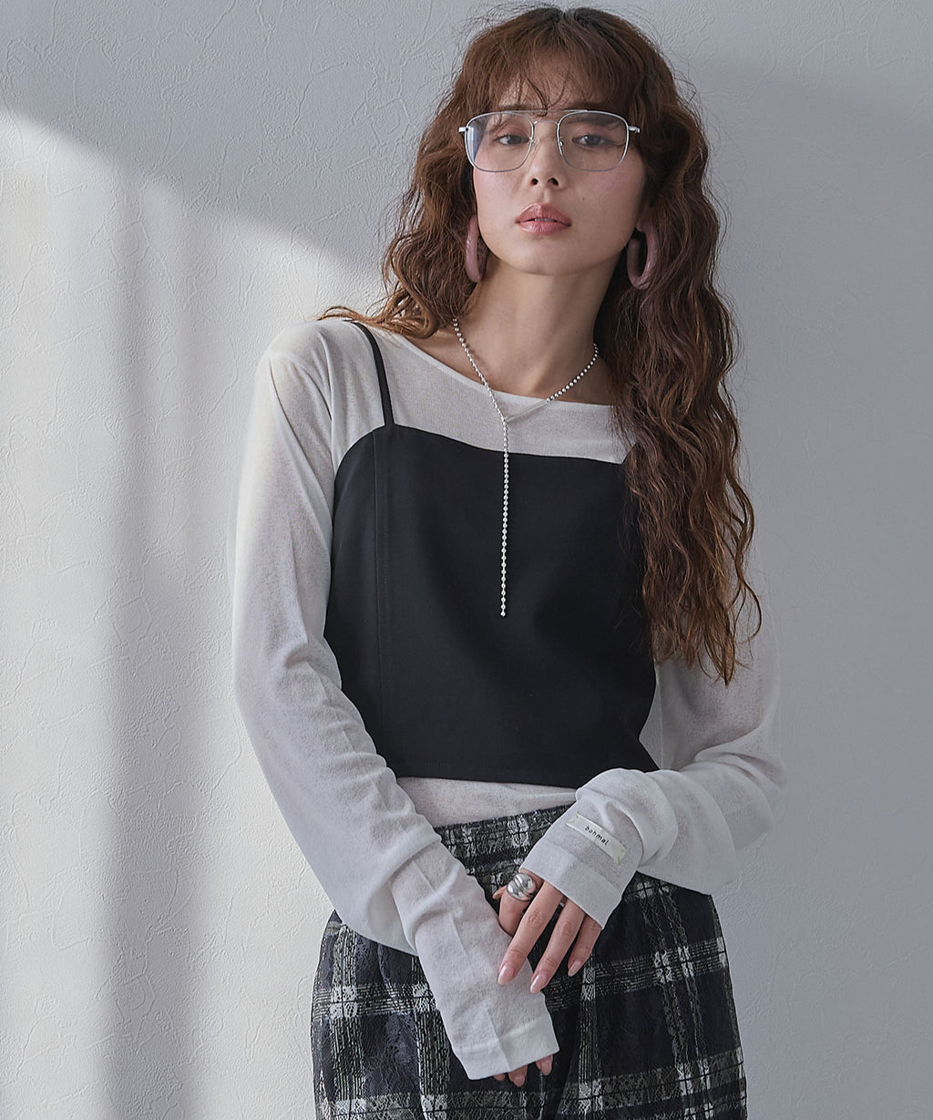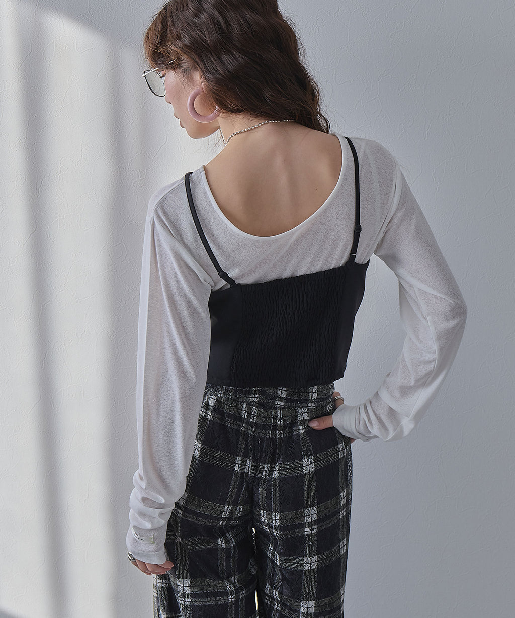 インナーにはブラトップやキャミソールなどをレイヤードするのがおすすめ。