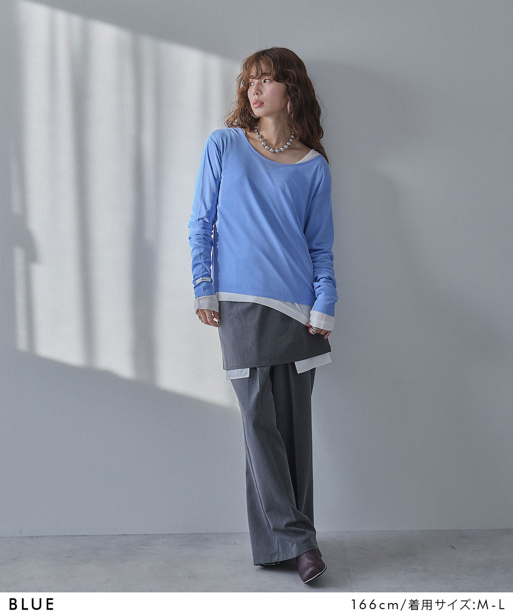 1枚で着やすいM-Lサイズとレイヤード&ゆったり着れるLL-3Lの2サイズ展開。